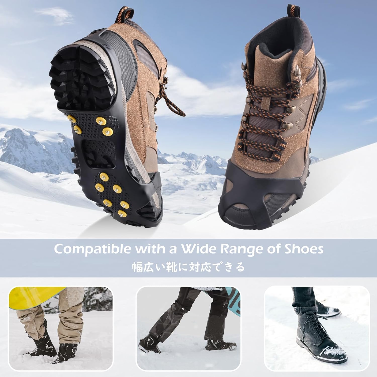 Fits Most Footwear: Designed with stretchable material for a secure fit, these ice cleats work with a wide range of shoes and boots—from casual sneakers to hiking boots. They stay in place without damaging your footwear