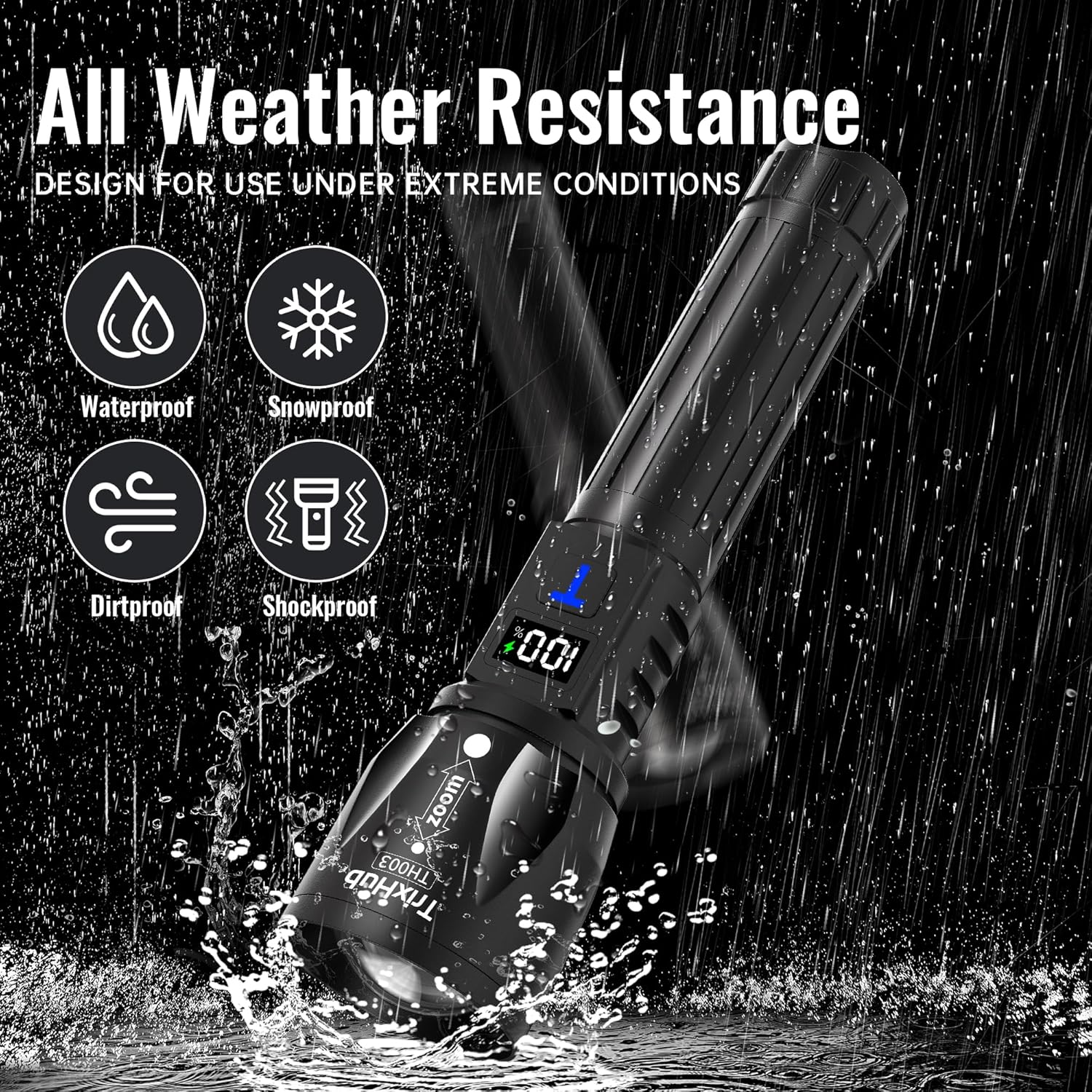 【Digital Power Display】Flashlights high lumens equipped with an LCD real-time battery level display, which provides a clear and accurate reading of the remaining battery power. This feature ensures you are always informed about the flashlight battery status, helping you avoid unexpected rechargeable flashlights power depletion and manage your usage effectively. The light bulb has a red fluorescent setting around it, which makes it easier to find the flashlight faster at night.