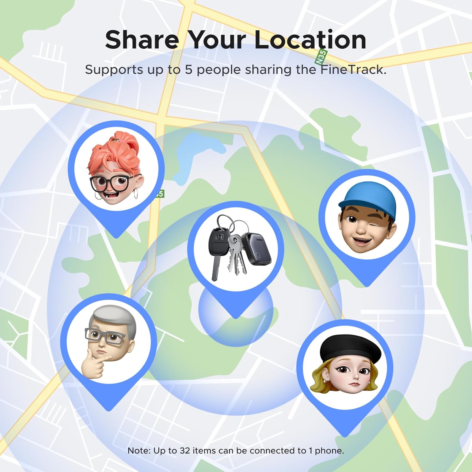 Easy Find & Family Sharing with Apple Find My: Quickly pair the FineTrack tag with your iPhone or iPad in just one tap. Using the pre-installed Find My app, add the Air Tracker tag to the Items tab to instantly locate and track your keys, wallet, and other valuables. With iOS 17 or later, you can also share your tracker’s location with family members, so everyone can help keep items safe. (Note: Compatible with iOS devices only, not for Android.)