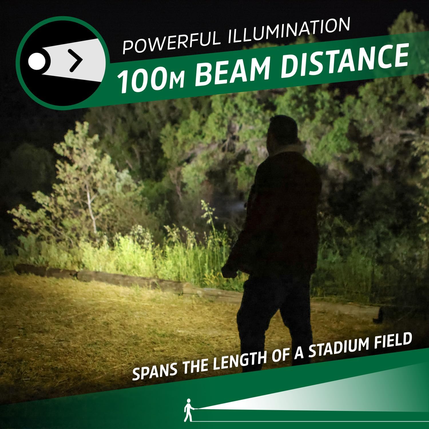 UP TO 15X BRIGHTER THAN STANDARD LED TECHNOLOGY: emits up to 1,200 lumens of LED light on Boost mode, with a beam distance of up to 100m