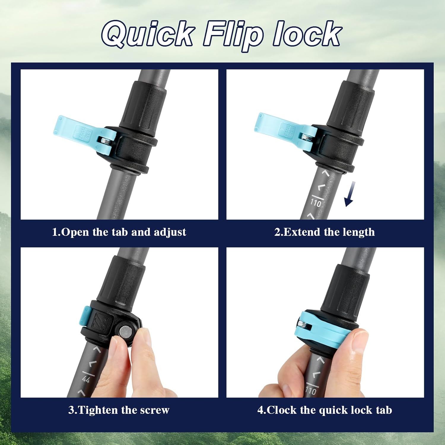 Compact and Portable: The telescopic design allows the poles to into a compact size about 24.8inch,weighing 6.88oz for easy storage and transportation