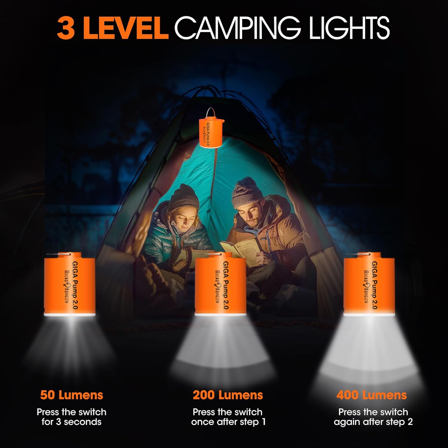 ✔ 【POWERFUL & EFFICIENT INFLATION】: Equipped with a rechargeable 1300mAh battery, the GIGA PUMP 2.0 is a mini air pump designed to swiftly inflate over 10 standard single air mattresses on a single charge. Ideal for camping, backpacking, and beach outings, this air pump for inflatables also functions as a lantern for up to 10 hours—perfect for low-light conditions. (Note: Actual performance may vary depending on the size of the inflatables)