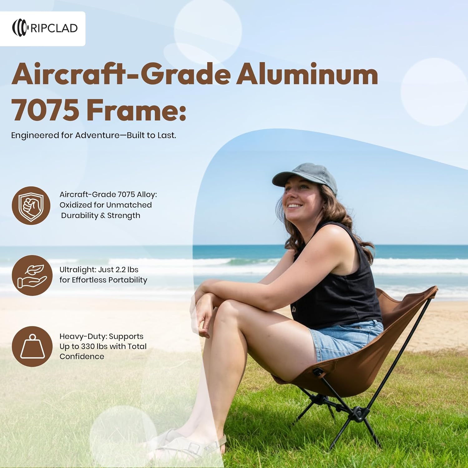 ๐ซ๐๐ฆ๐: Built with a strong 7075 aluminum frame, this camping chair supports up to 330 lbs while remaining lightweight. Ideal for camping chairs for adults or backcountry use, it ensures long lasting durability.