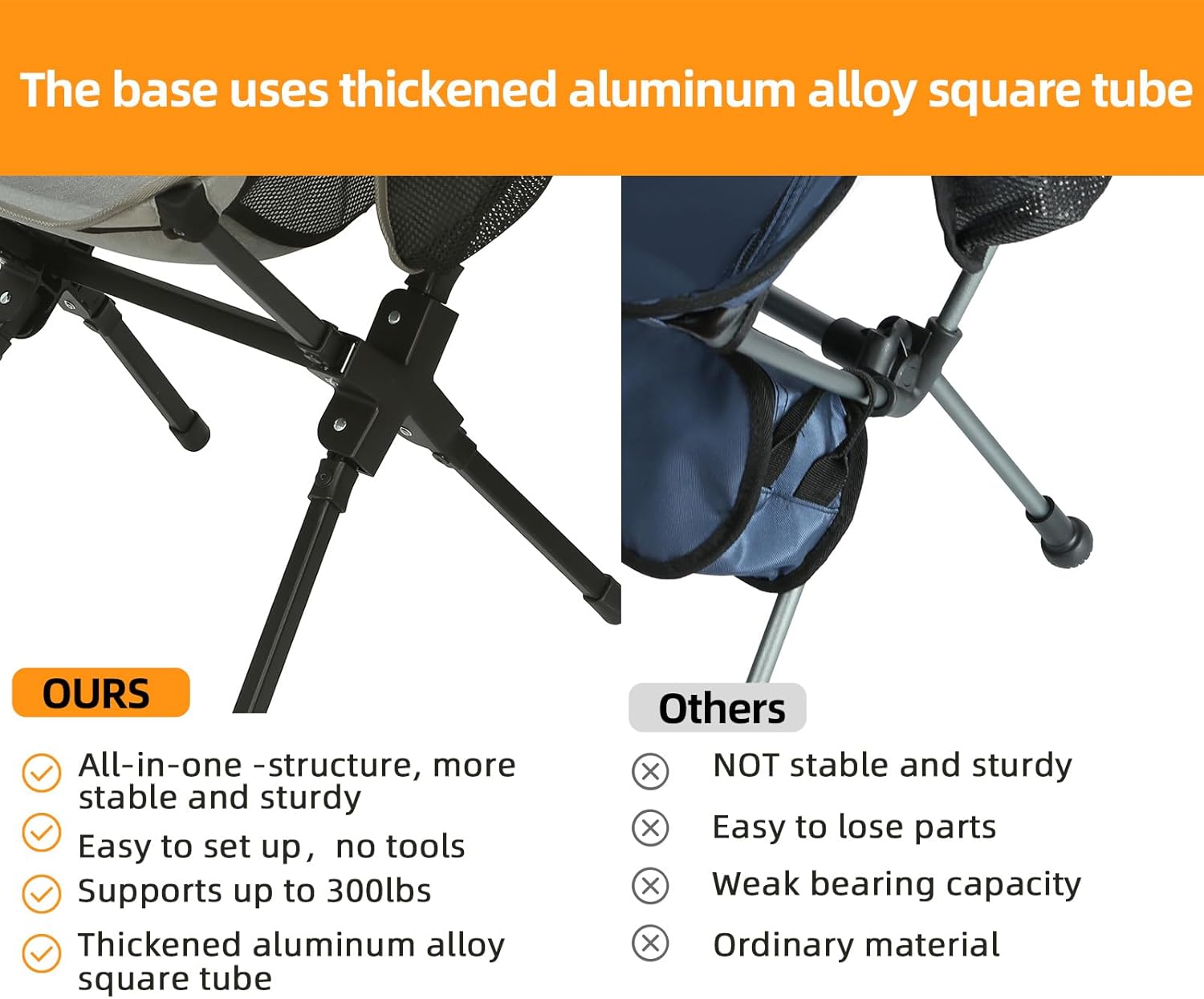 Use reinforced and thickened high-quality aluminum square tube chair frame, it is stronger and more stable