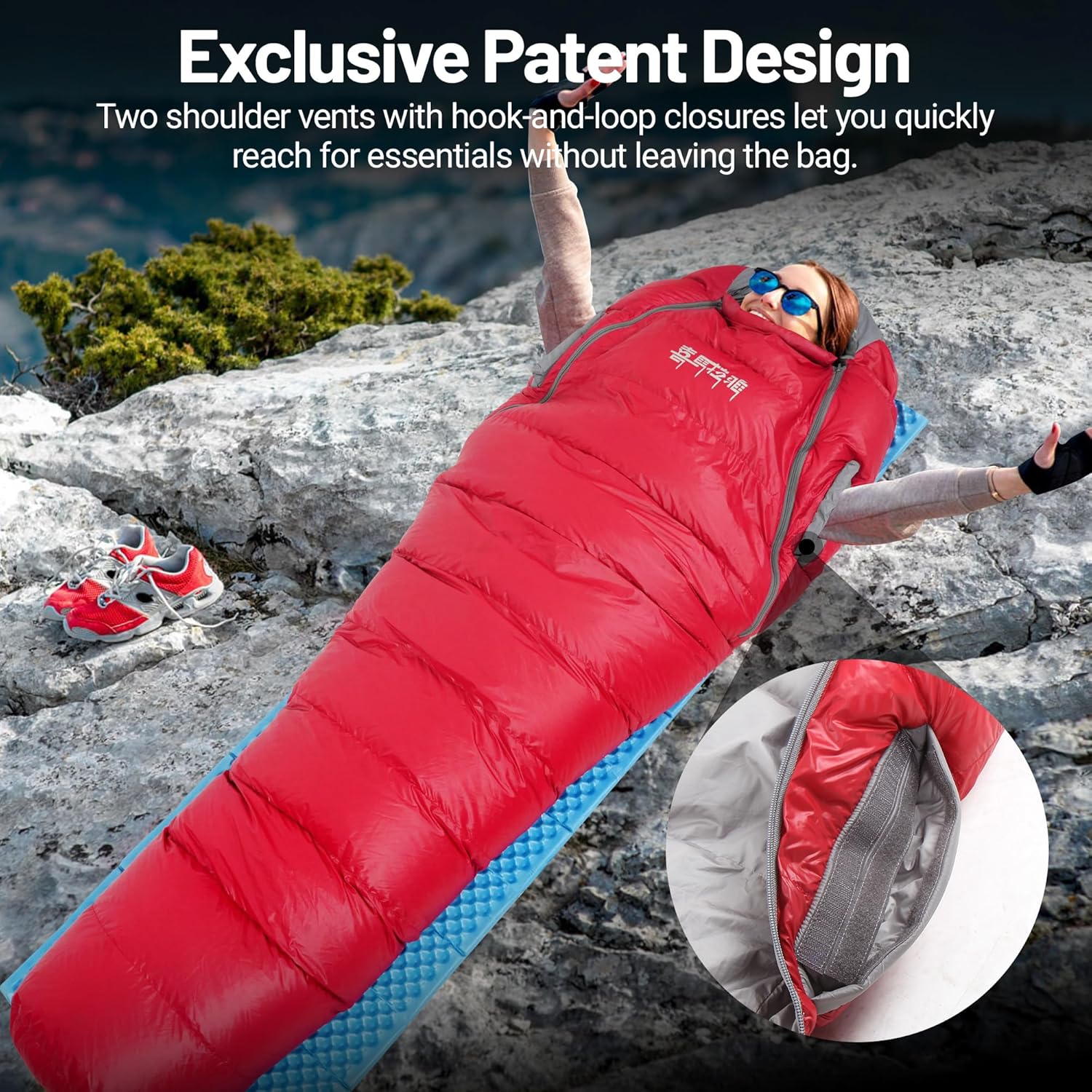 Unique Design: Our camping sleeping bag is designed with zippers on both sides, which makes it easy to sit and lie down and get in and out. There is HOOk & LOOP on the shoulder of the sleeping bag. When you open it, you can stretch out your arms, which can keep warm and move freely in cold weather. The outdoor sleeping bag is designed to be wide at the top and narrow at the bottom, which can achieve better warmth retention effect.
