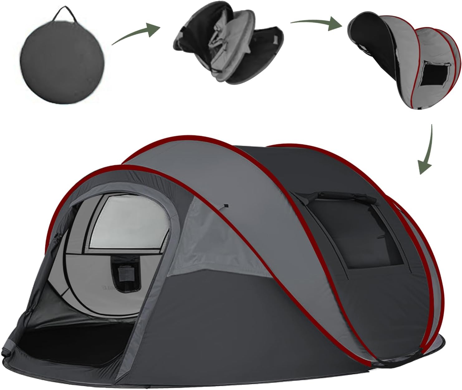 This is a Waterproof & Lightweight Backpacking Tent: This tent is made of 3000MM waterproof PU-Coated 210D Oxford groundsheet, 2000MM waterproof PU-Coated 190T polyester fabric roof, 190T polyester breathable inner wall with a large B3 no-see-um mesh wall. Heats sealed seams in the connection area prevent leaking water, keep you dry inside. Using 7.9mm 7001 aluminum poles, the tent’s total weight is only 5.7 lbs, super lightweight, easy to carry.