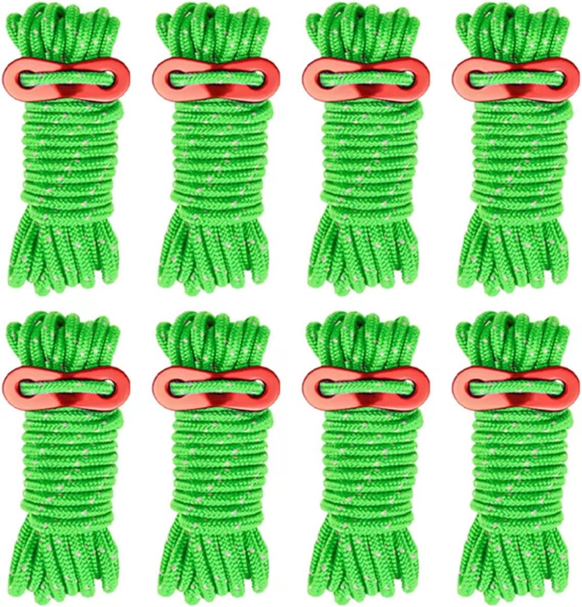 Guy Rope 4mm Reflective Cord Guy Line Tent Guide Rope with Aluminum Adjuster 13 Feet 8 Pack for Tent Tarp Outdoor Packaging
