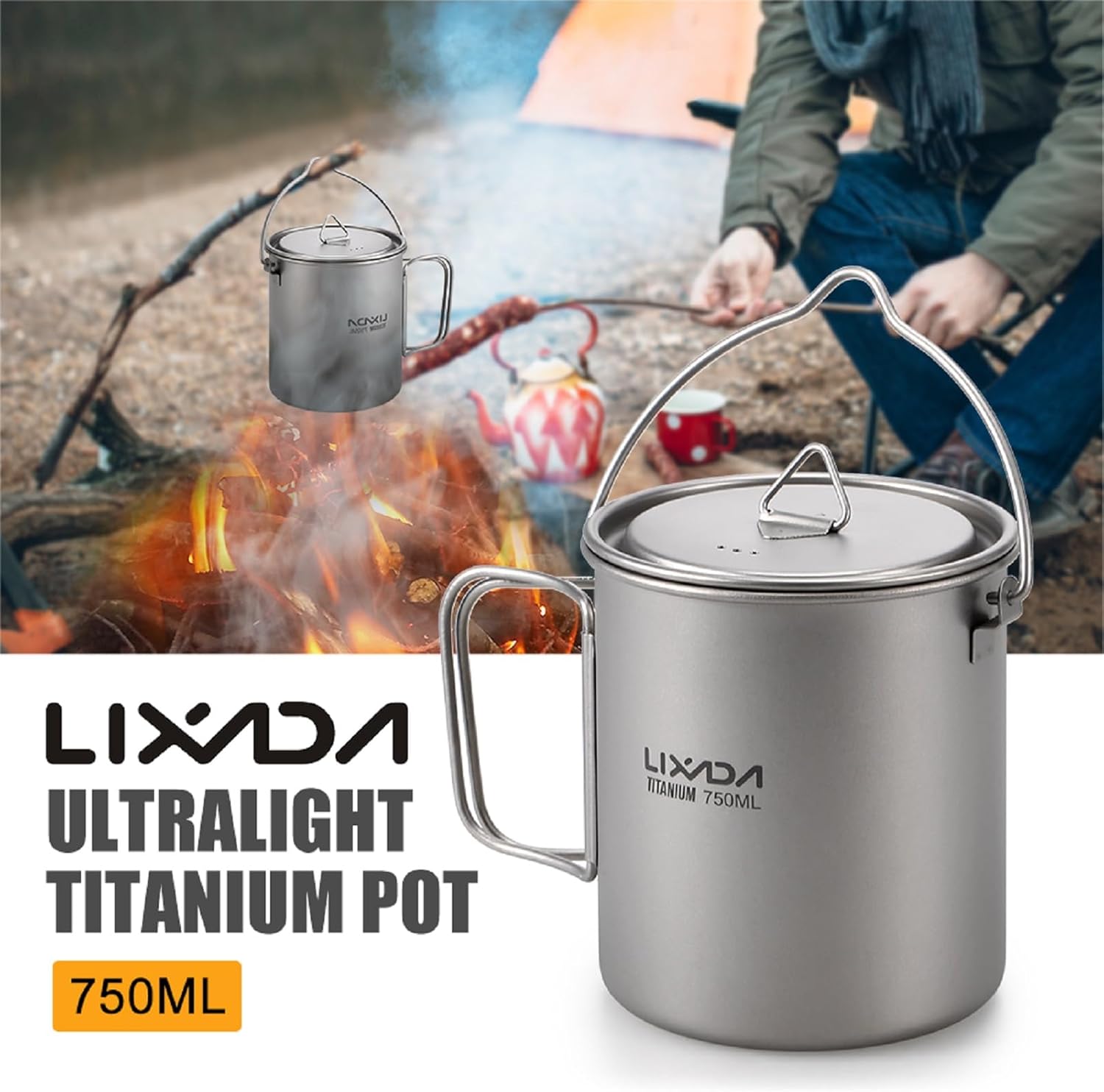🔥750ml Titanium Pot : Lixada 750ml titanium pot is great for camping, hiking, backpacking, outdoor adventure and survival.【ONLY 1 PCS 750ml Pot and mesh storage sack, others NOT INCLUDED!】