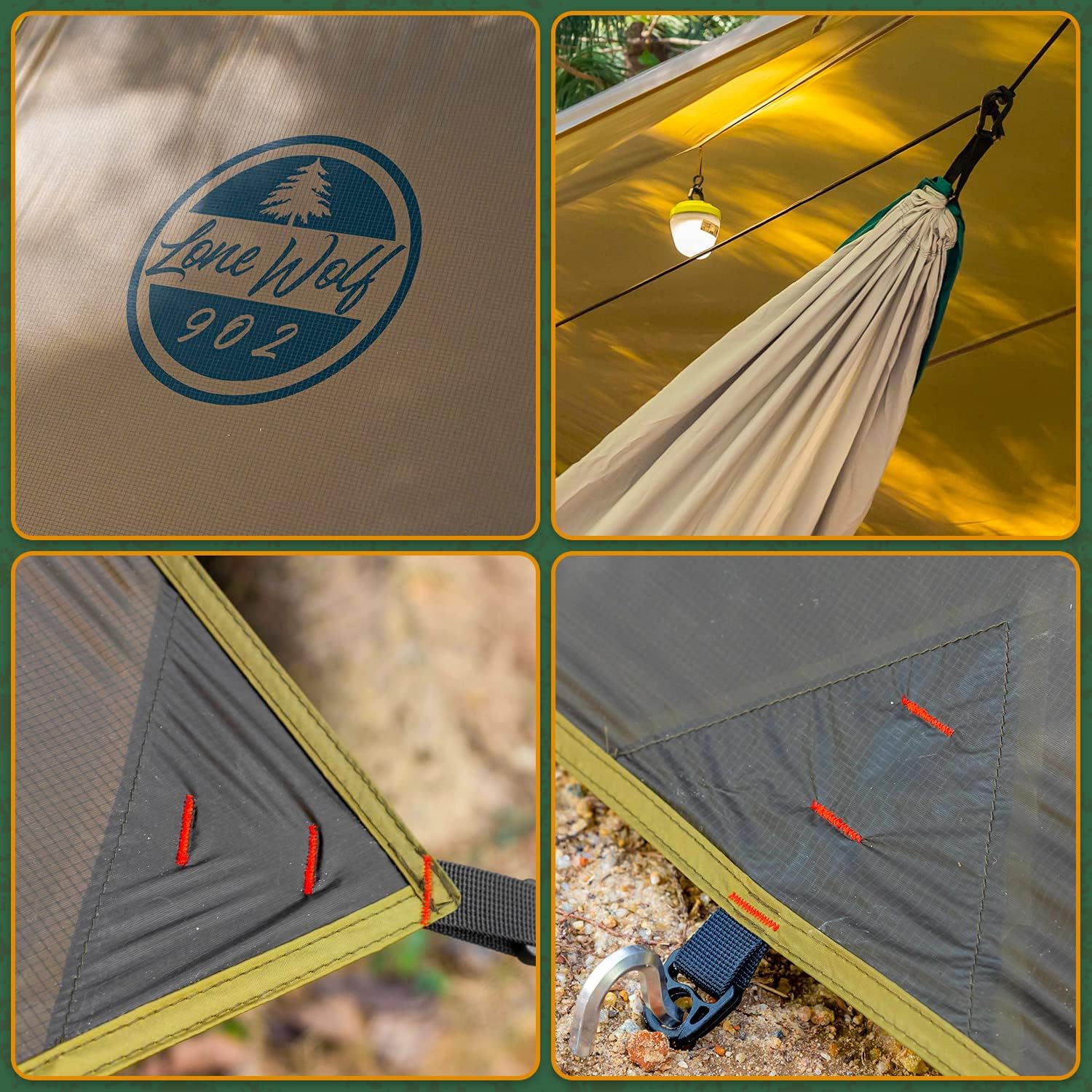 3000mm Waterproof Rating Fabric: Wolfden hammock camping tarp features 3000mm waterproof rating for use in the rain, it allows you to use in different weather situations.