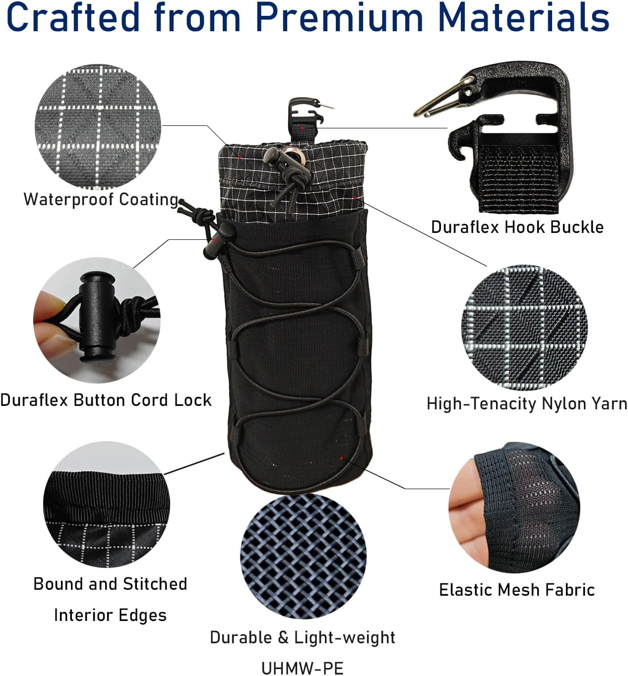 ADVANCED UHMWPE BUILD: At just 40g, this military-grade water bottle carrier for backpack withstands sharp rocks & downpours. Unbreakable yet ultralight – minimal weight, maximal durability.