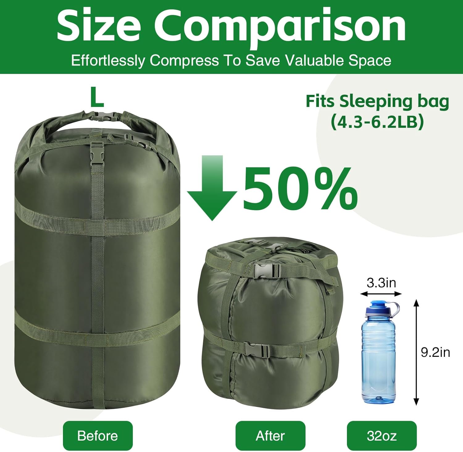 【Save Valuable Space, Lighten Your Load】: This compression sack for sleeping bag features 4 strong, adjustable compression straps for efficient compression and storage. It saves you more valuable space, making your journey more convenient and comfortable