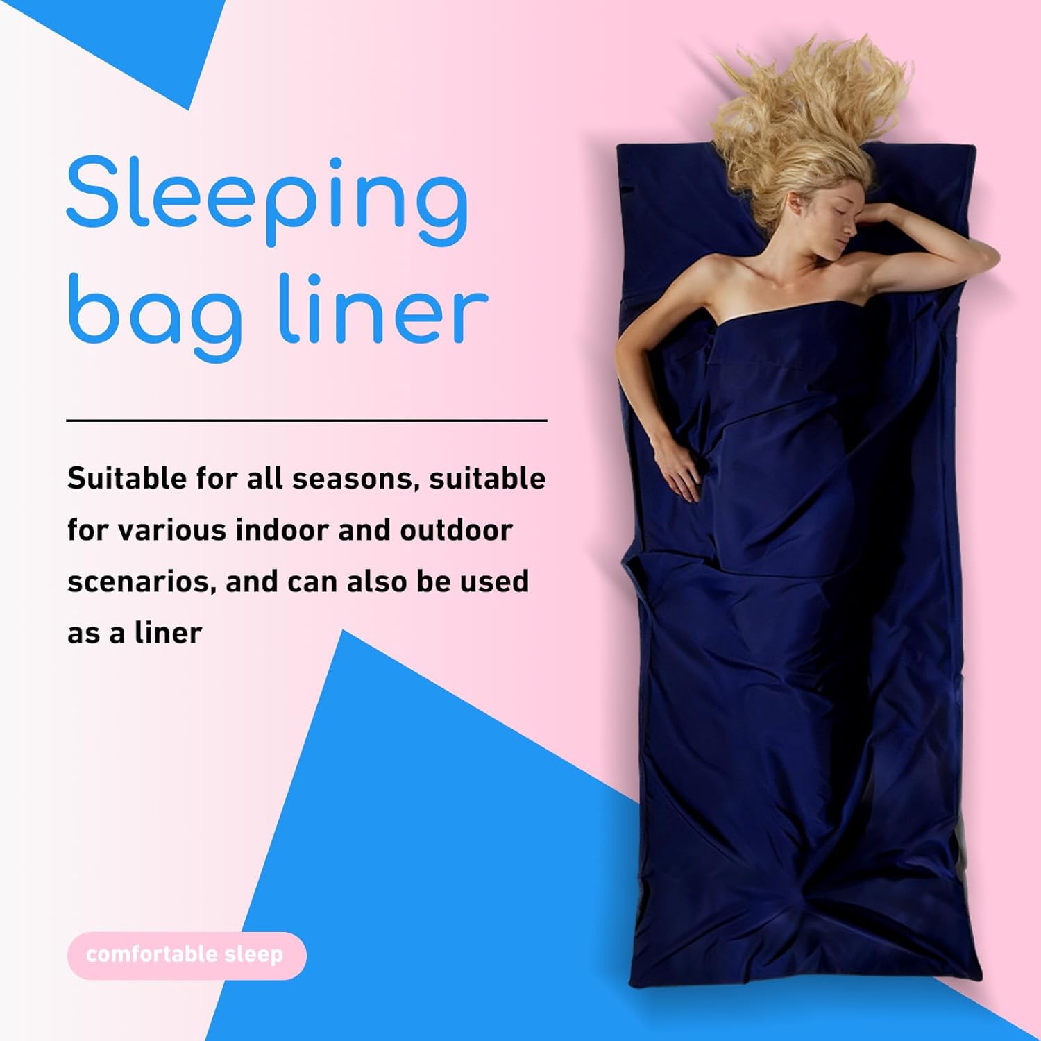 Upgrade your camping, hiking, and travel essentials with this navy blue sleeping bag liner – where comfort, versatility, and practicality meet.