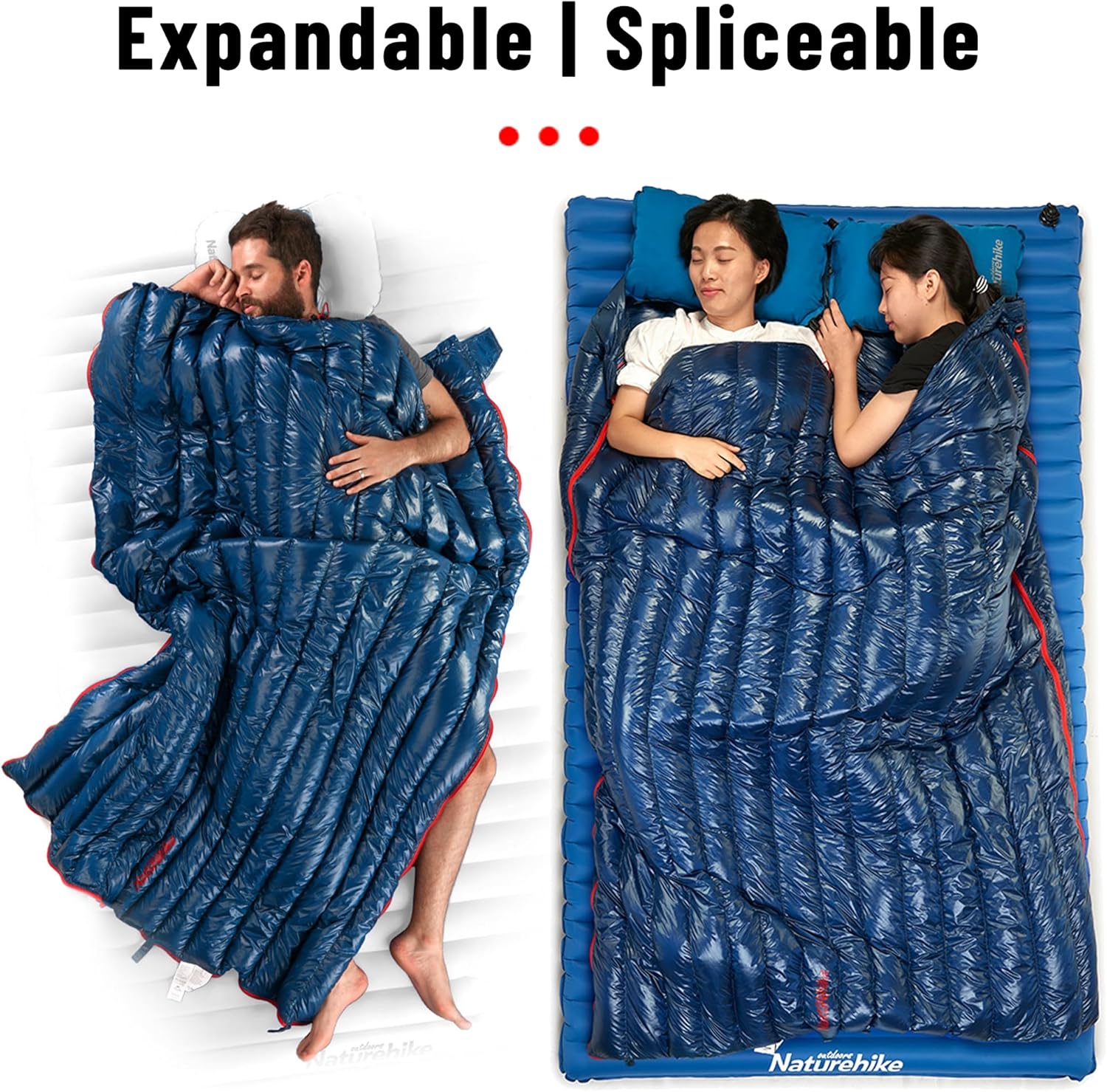 RDS Duck Down Sleeping Bag – The CW295 down sleeping bag is filled with natural duck down (295g, 85% loft), trapping warm air for a thick, cozy embrace. Its 650+ fill power outperforms regular down, delivering cloud-like comfort. It fully opens for summer use. Two bags connect vertically to form a double sleeping bag, ideal for solo or shared use with a partner/friend, enhancing outdoor comfort.