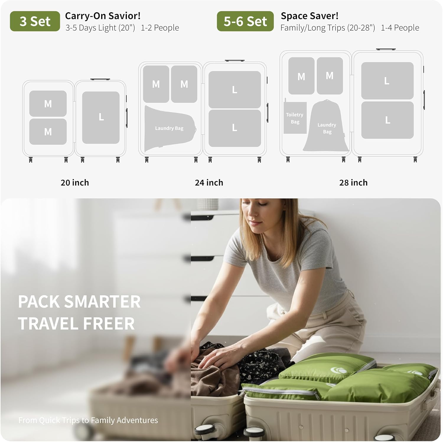 Space Saver: The packing cubes for travel compression fit more items, and keep your luggage perfectly organized on the go.The packing cubes compression save 30% to 50% room (especially for fluffy items) not only for trips but also for indoor storage.