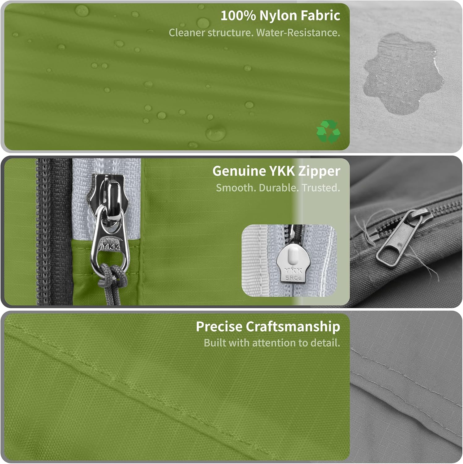 Rather than using standard materials, we prioritize quality and longevity. Premium nylon-Tougher, lighter, more water-resistant and durable.