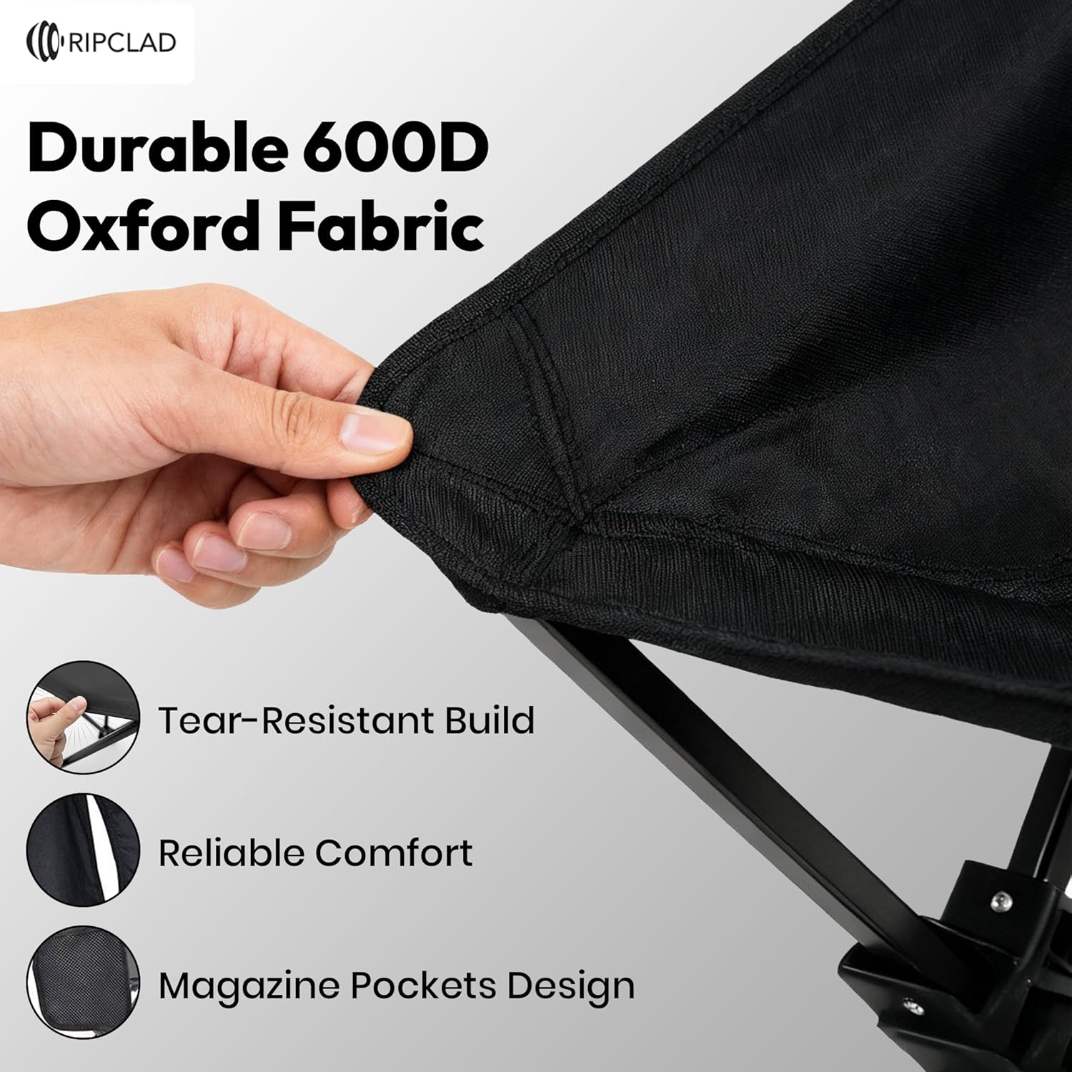 ๐๐จ๐ฆ๐๐จ๐ซ๐ญ๐๐๐ฅ๐ & ๐๐จ๐ง๐ฏ๐๐ง๐ข๐๐ง๐ญ: Made with tear resistant 600D Oxford fabric, this folding camping chair provides a comfortable seat. The built in side pocket keeps essentials within reach during outdoor activities.