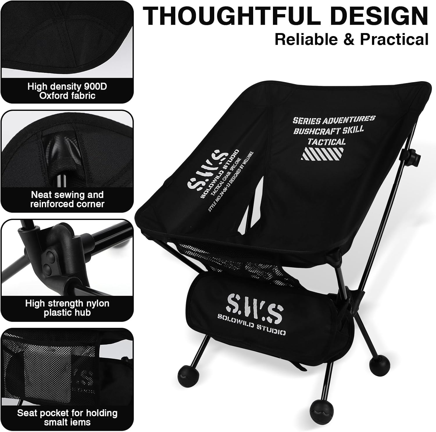 ALL-DAY COMFORT TECHNOLOGY: Our backpacking chair breathable 900D Oxford fabric with double-stitched seams and side mesh panels prevents overheating. Anti-static coating repels dust and debris—stay clean and comfy for hours.