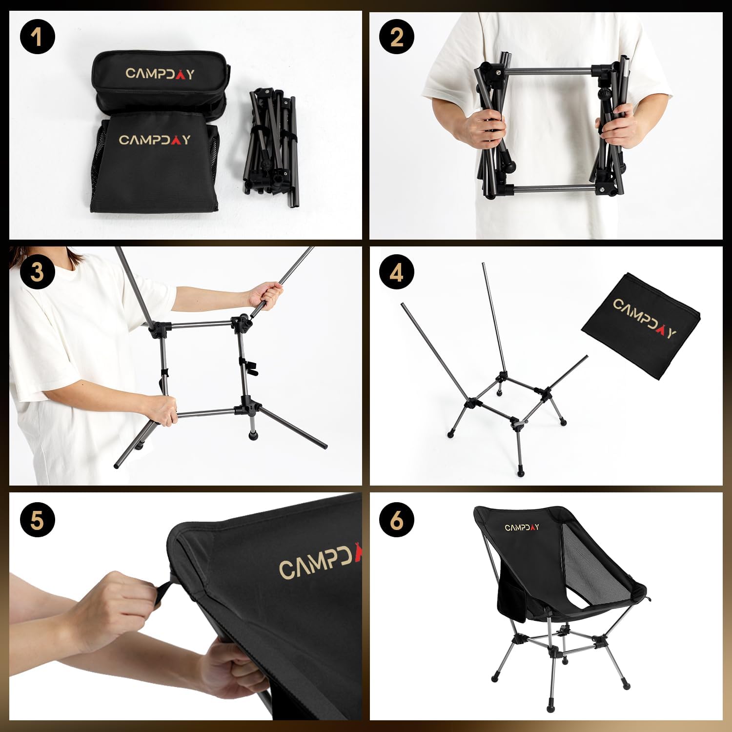 Versatile Use: The CAMPDAY camping chair is ultra-light and portable, perfect for all your outdoor adventures—camping, backpacking, beach days, hiking, fishing, BBQs, and picnics. Enjoy on-the-go comfort with its ergonomic design