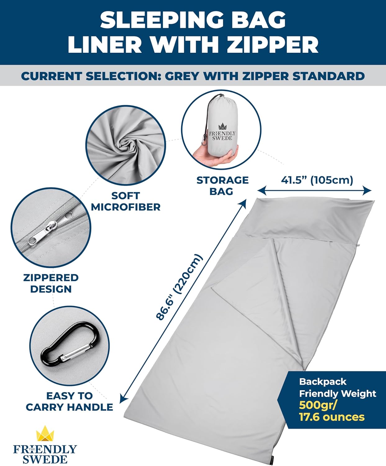 GENEROUS SIZE: 41″ x 86″ (105 x 220cm) including pillow pocket – this liner allows you to stretch out your legs in any sleeping bag or hostel bed. The body compartment excluding pillow pocket is 66.5″ long. Weighs 500gr/17.6 ounces. For ultralight packing needs – choose our polyester version instead! Made of durable, easy clean machine-washable microfiber with comfortable, smooth texture and side opening zipper that open all the way down.