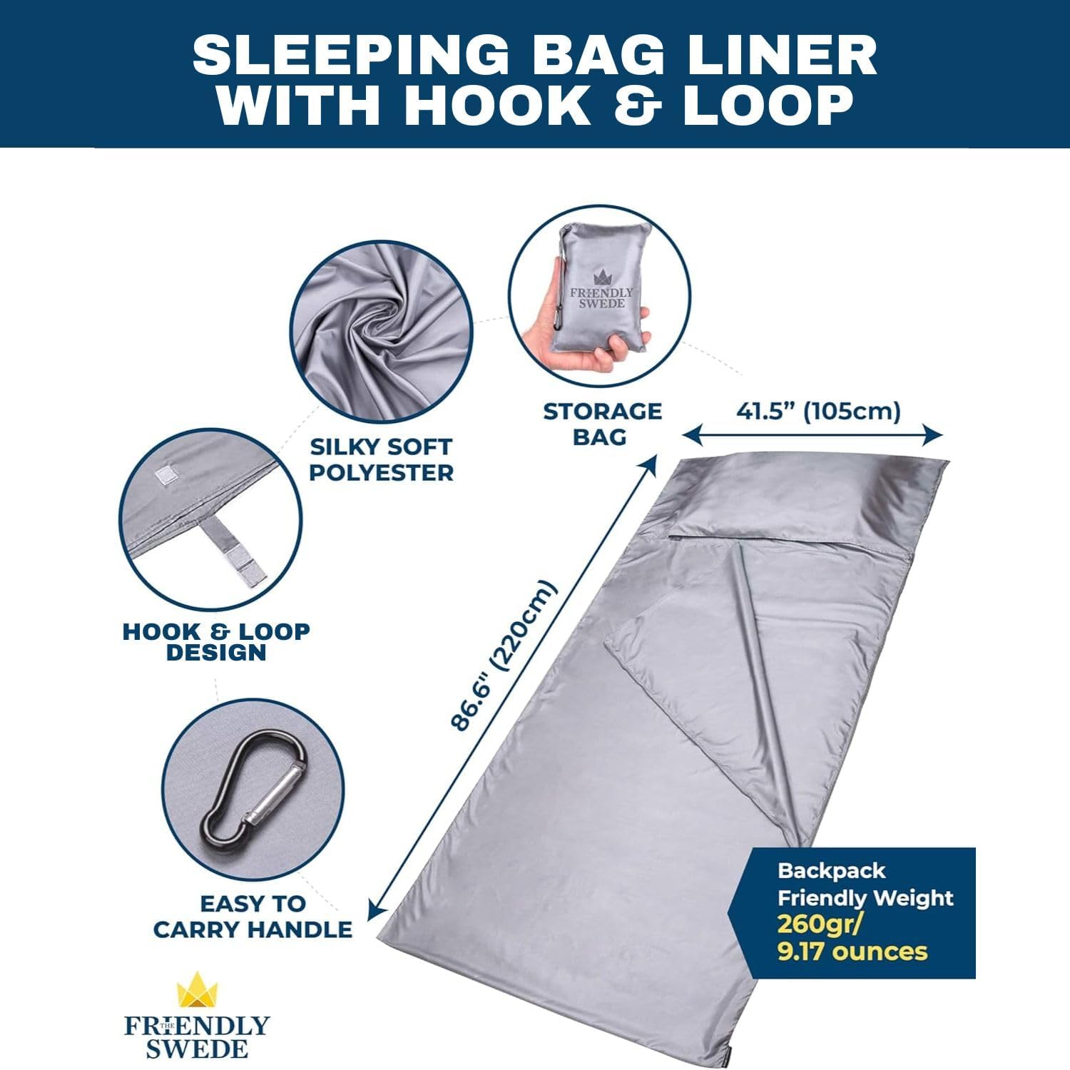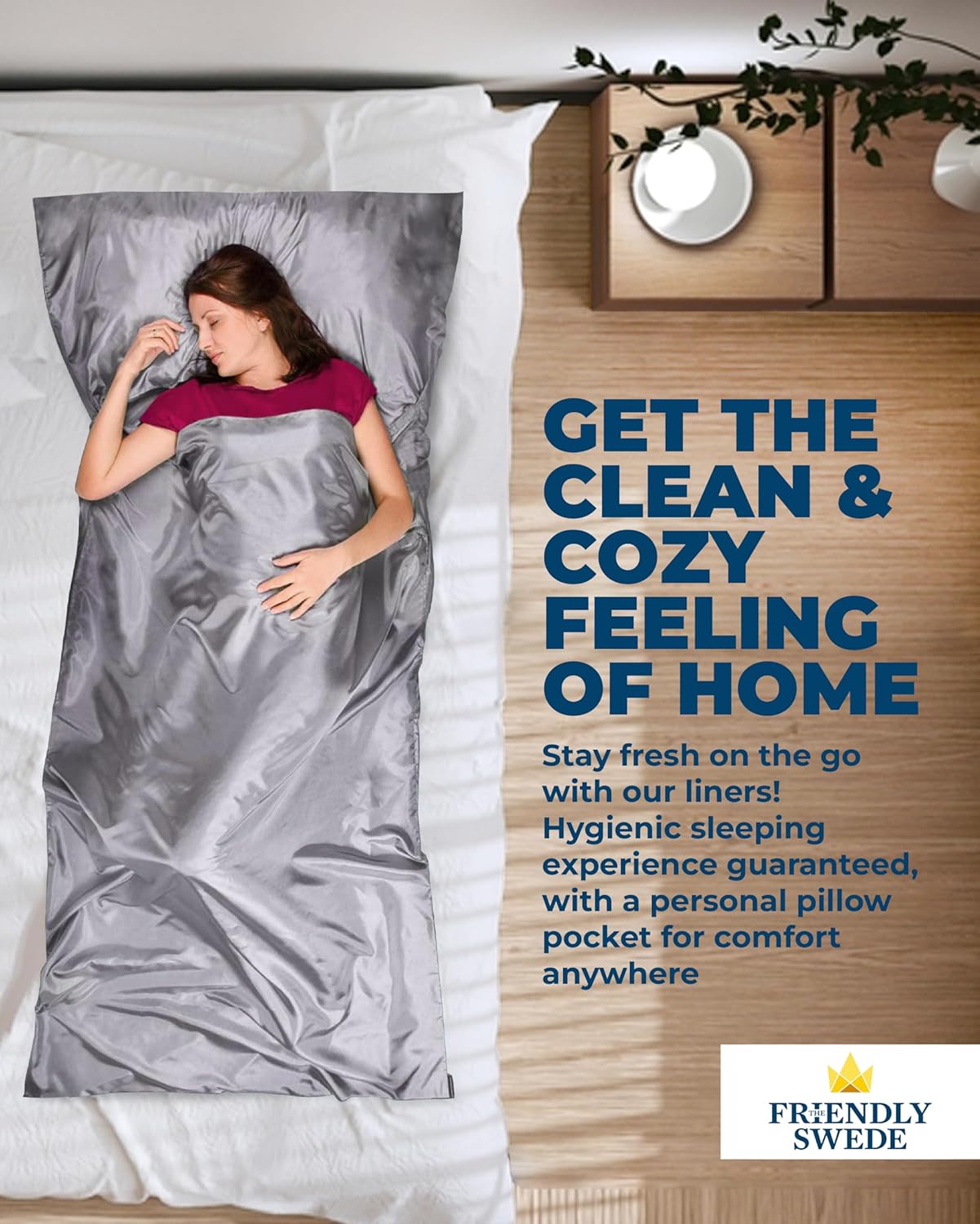 🥾 The Friendly Swede Sleeping Bag Liner — Ultralight Polyester or Cold Weather Microfiber Adult Sleep Sack; Thin Travel Sheets for Hotel; Camping Sheets; Travel Sleeping Bag with Pocket-Size Stuff Sack — Review, Key Features & Current Price