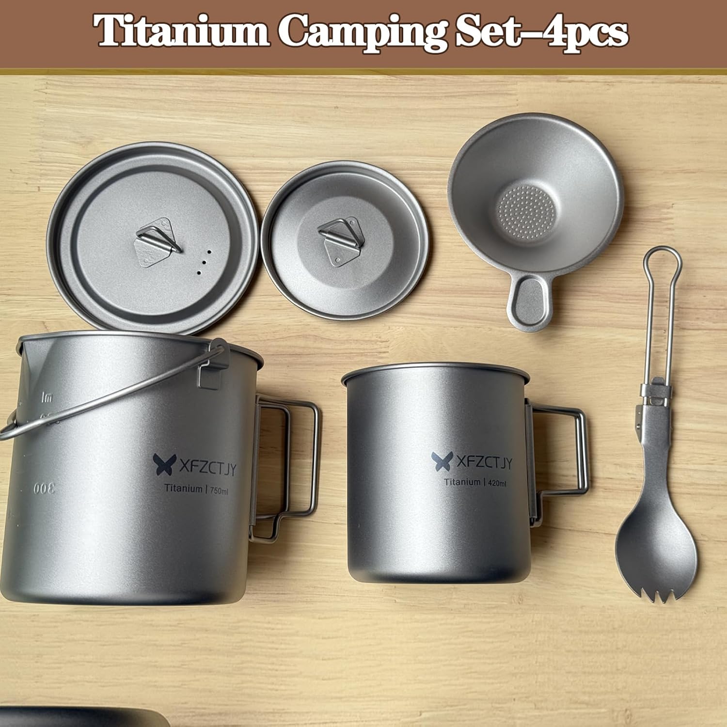 【Pure Titanium Ultra-Lightweight】 crafted from premium grade TA1 99.7% pure titanium. completely food-safe,corrosion-resistant, and adds no metallic taste. the entire set is remarkably lighter than stainless steel, slashing pack weight for long-distance trails and alpine missions.