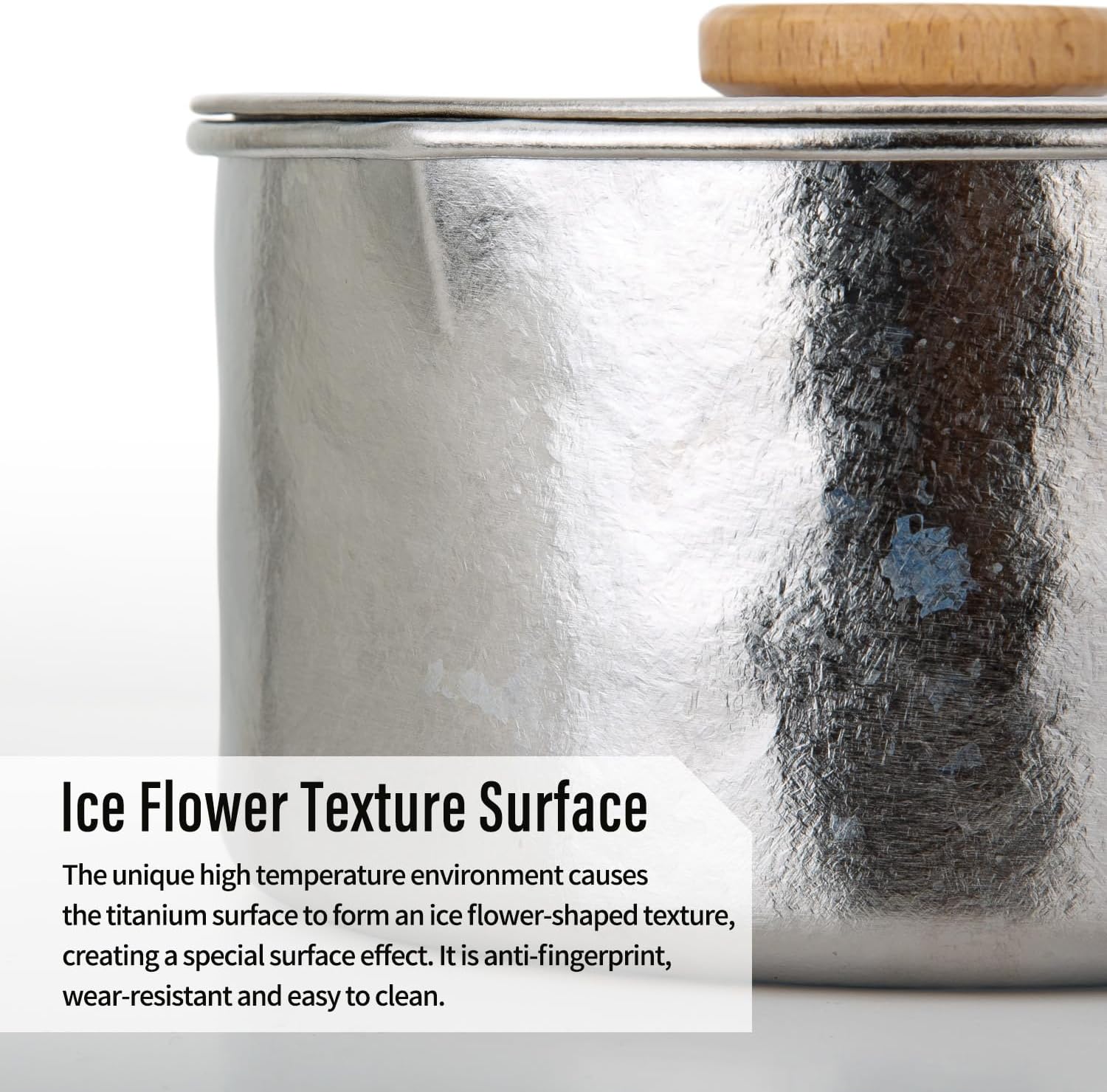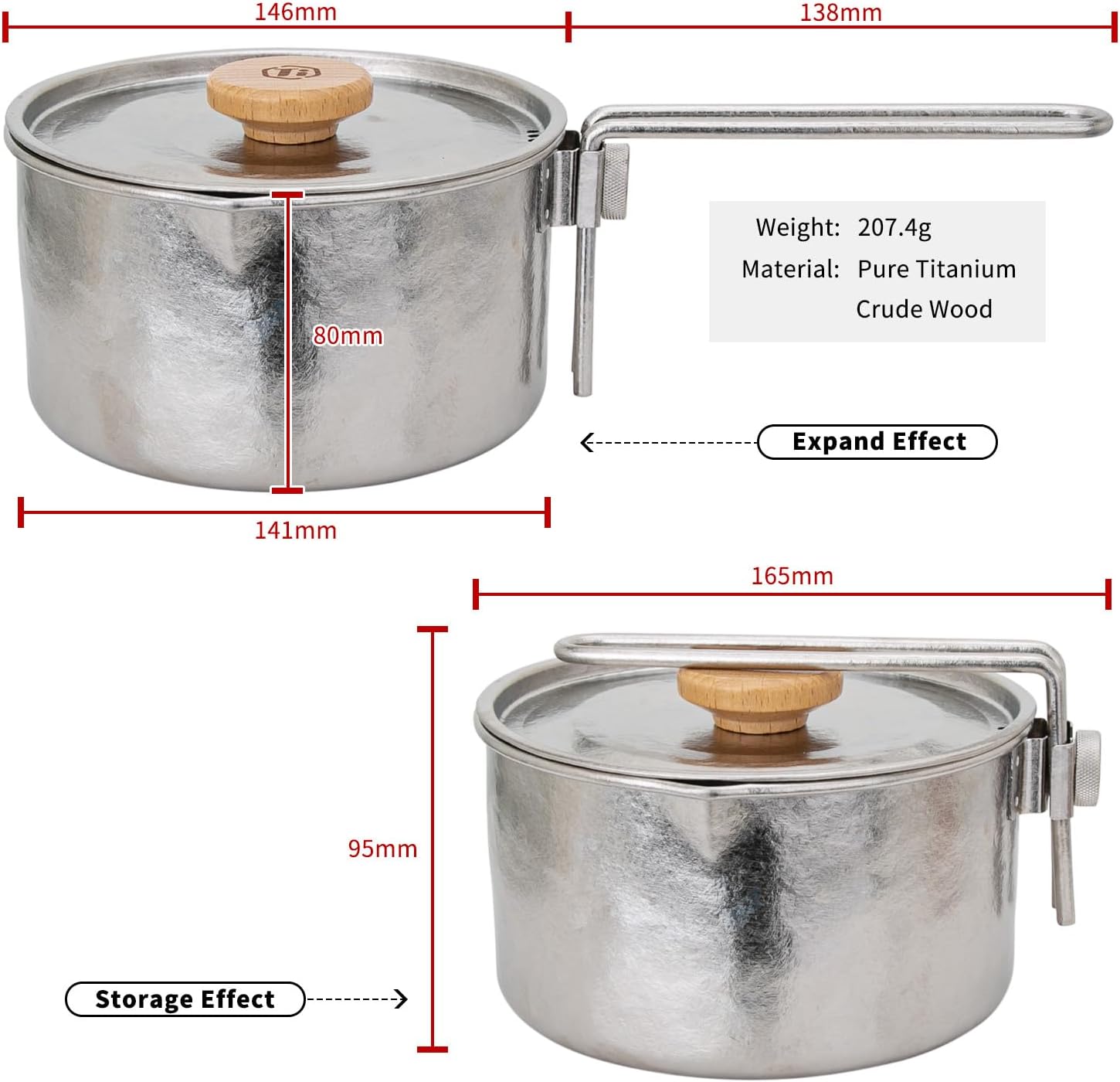 Heat Distribution: The titanium pot can be heated on any heat source, and the bottom adopts a concave convex ring design, which can make the pot more stable on a flat surface and avoid the problem of deformation of the pot body caused by long-term heating. Note: Titanium will produce other colors when dry burned at high temperatures.