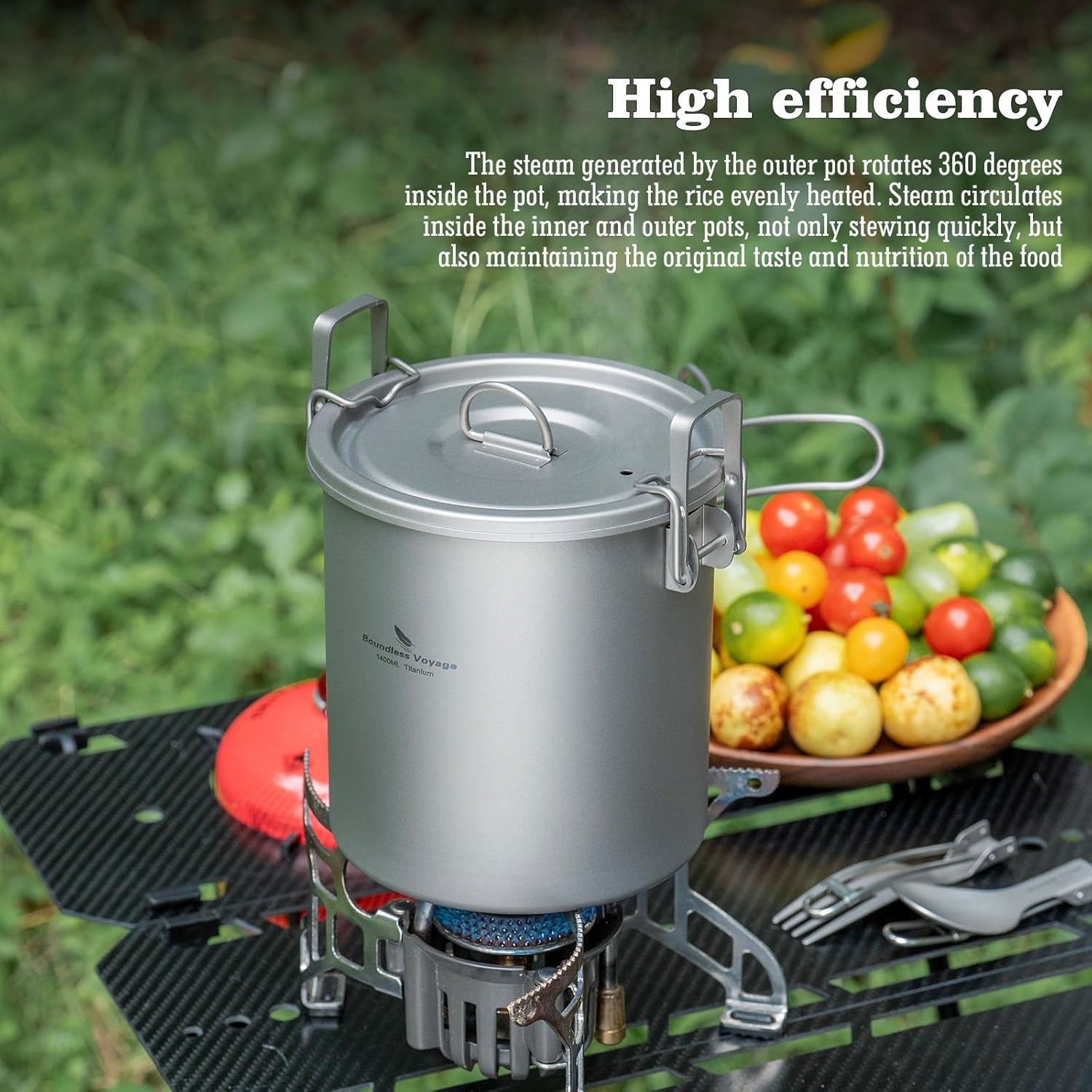 Multifunctional Cooking Pot: Titanium outer pot, combined with inner pot, can steam rice, stew rice and stew beef / pork ribs; The outer pot can also be used as a single pot to cook soup, noodles etc