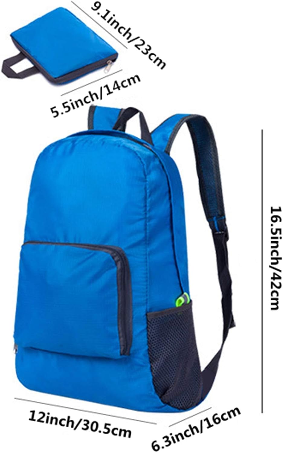 ✔FOLDABLE: The backpack with fold size 9.1×5.5×0.4inch/23x14x2cm and unfold size 16.5x12x6.3inch/42×30.5x16cm. Stuff the bag into its own pocket for storage and fold it after use.