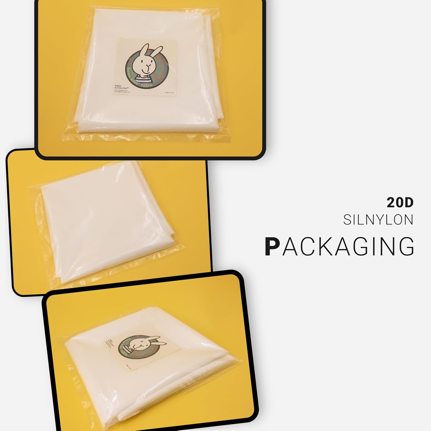 Professionally cut and pre-packed by EMMA KITES in full retail packaging. FIXED LENGTH per piece: available in 1-yard and 3-yards pre-cut piece, folded. IRONING: the temperature for ironing nylon <248°F / 120°C; MAINTENANCE: Wash Silnylon in cold or lukewarm water with hand. Softly brush it to remove stains. Line dry fabrics in the shade, away from direct sunlight.