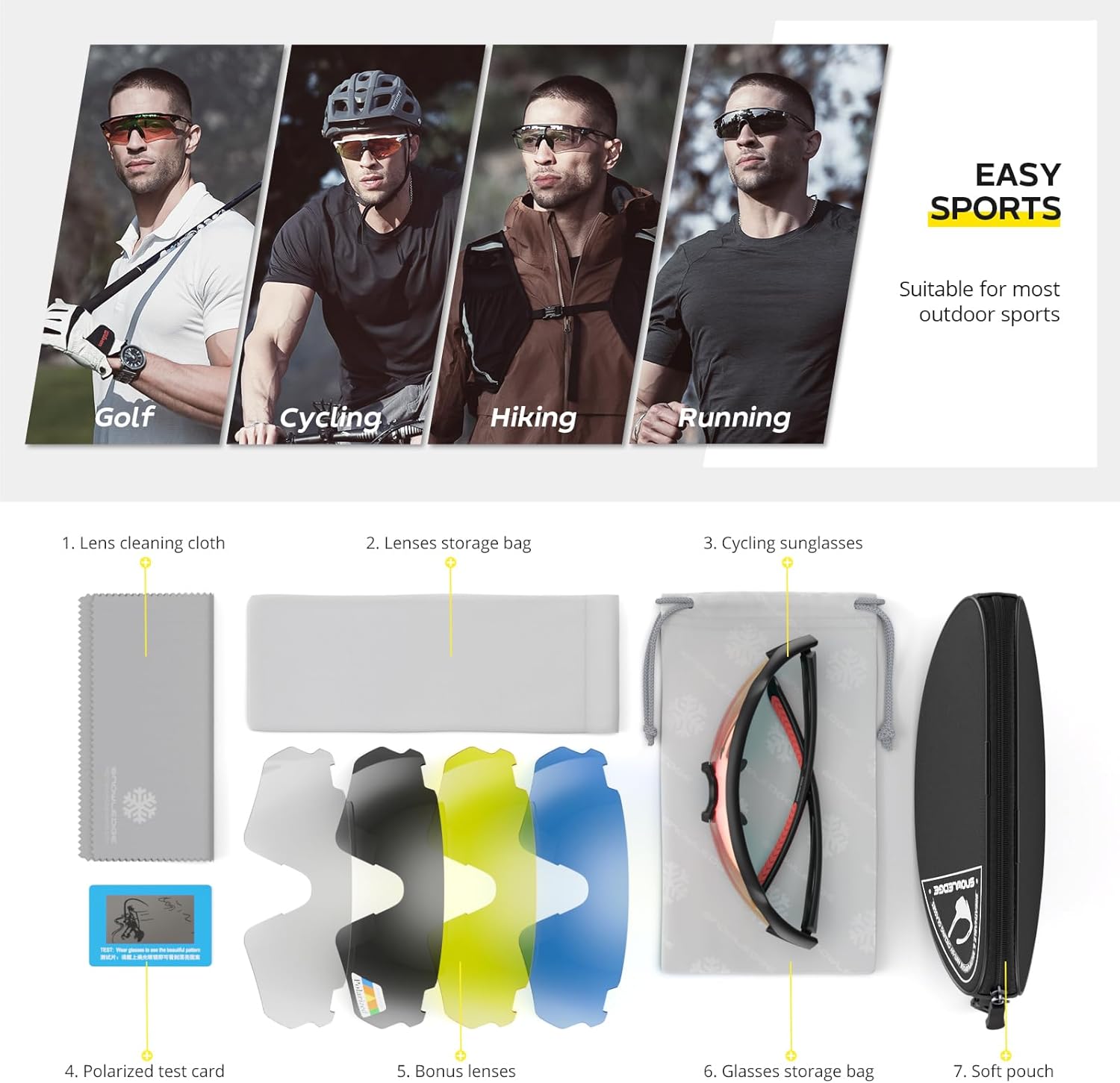 Bike sunglasses with different color lenses for different people, men, women, adults and youth, also suitable for different sports – bicycles, driving, running, fishing, racing, skiing, hiking
