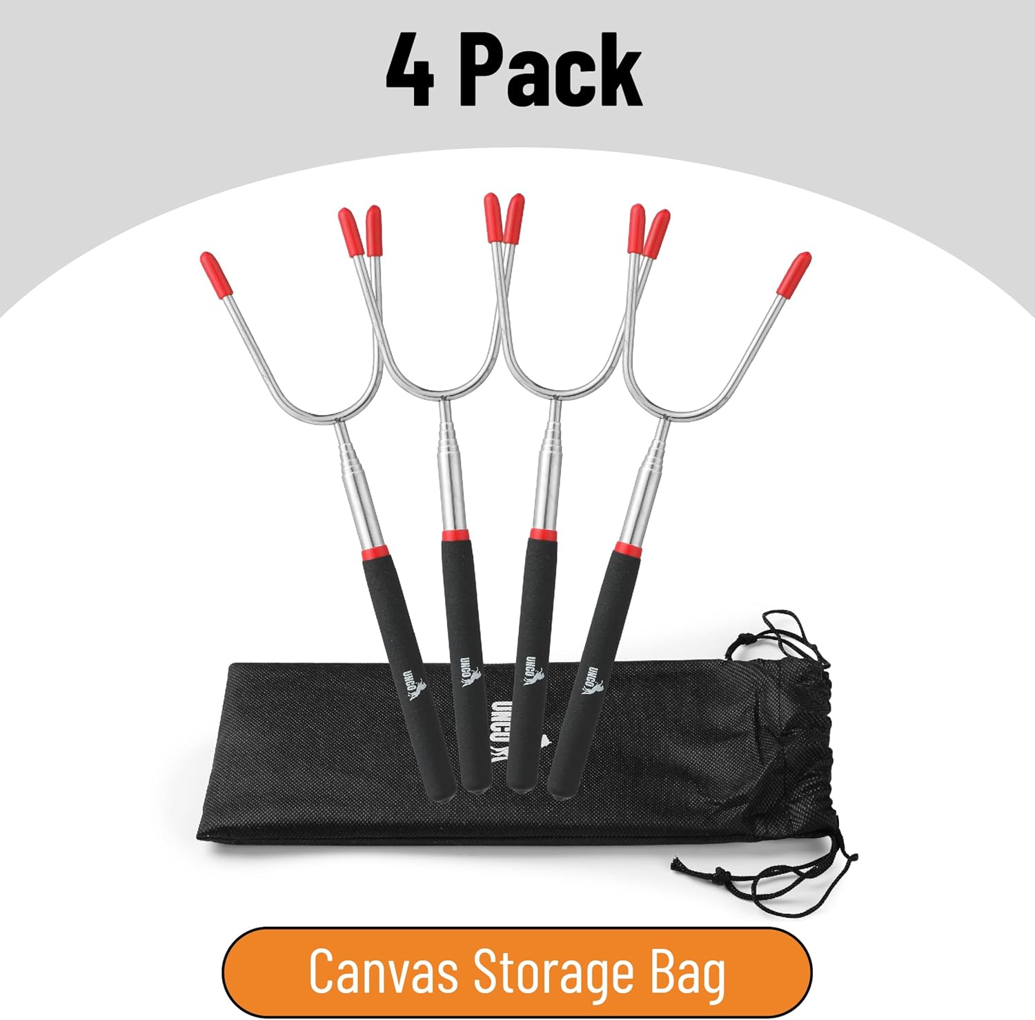- UNCO extendable stainless steel roasting sticks come in a set of 4, making them perfect for family camping trips, backyard BBQs, and bonfires.
