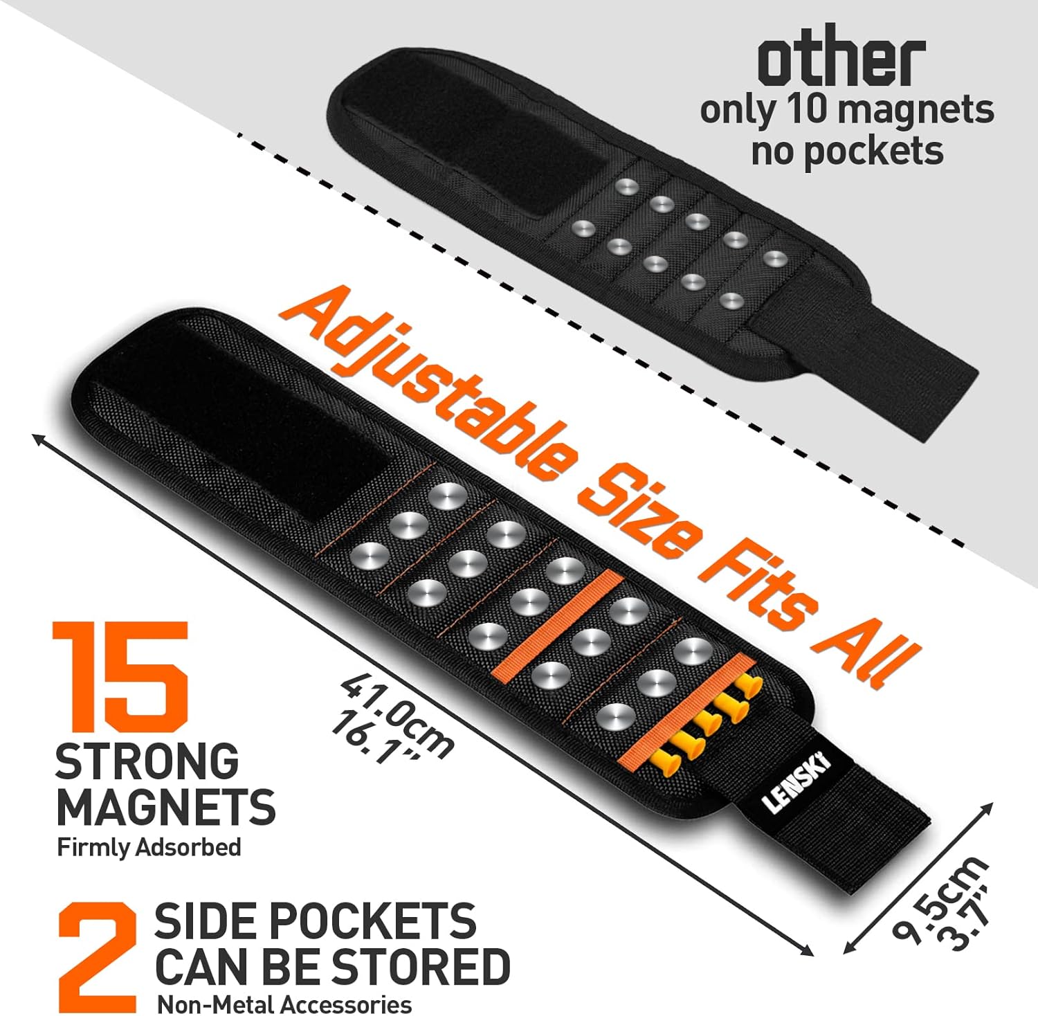 【Tools for Men】-Lenski magnetic bracelet has a double velcro strap, adjusting it to different sizes for both men and women. the knitted filling net is used in the wrist contact area to keep our wrist ventilated and comfortable for work