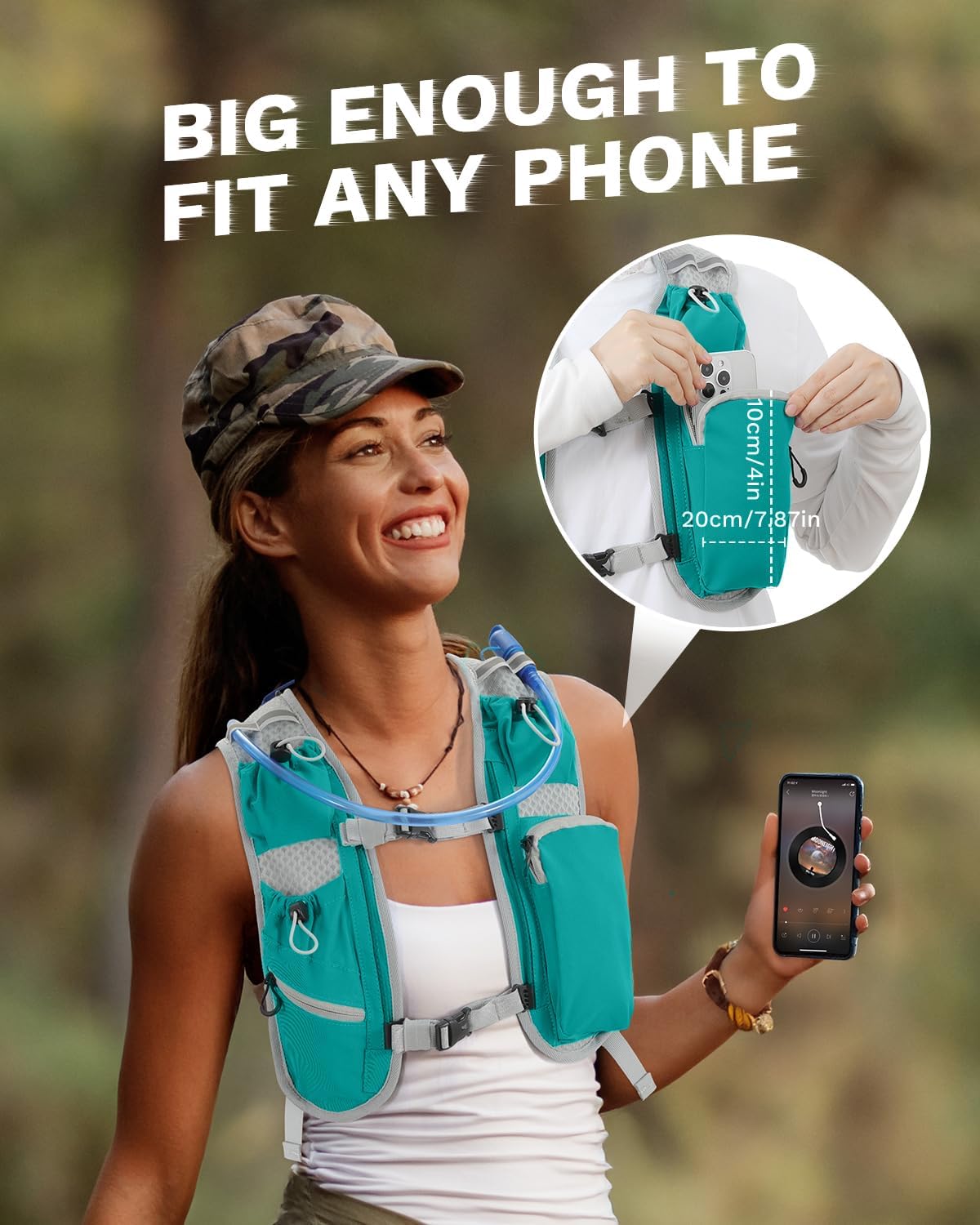 🏃‍ Grab & Go, Never Slow Down🏃‍ 5 pockets on the shoulder strap of the running backpack keep your phones(all sizes), extra water flask, tissues, salt tablets or energy gels within thumb’s reach —no twisting, no unclipping. Stay focused and safe with your running vest during running, jogging, marathon, half marathon, climbing, hiking, scrambling, cycling, biking, walking, backpacking, traveling, etc.