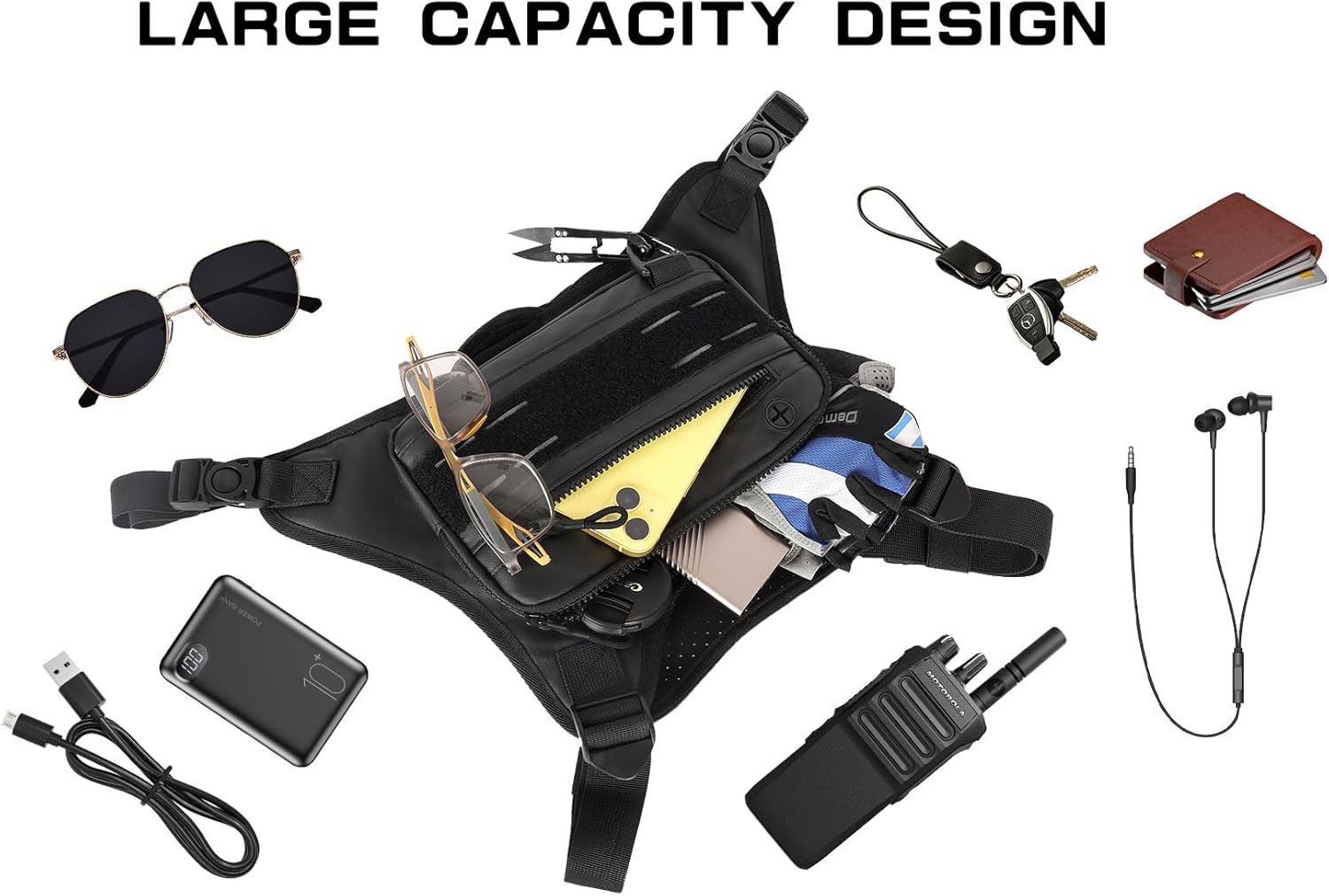 FREELY ADJUSTABLE STRAPS:Featuring four extra wide elastic straps, so the chest bag can be used by different sizes men and women. And the straps around the waist is elastic and adjustable too, aim to make all people enjoy this chest pack.