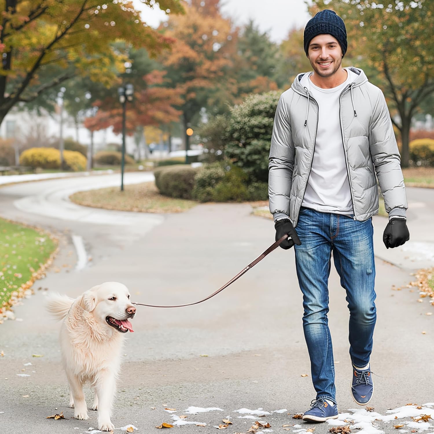 All-Scenario Outdoor Adaptation: Dog Walking (Warm and anti-slip, making it easy to hold the leash ) , picnicking (Touchscreen photography, water and dirt resistance), cycling (Anti-slip grip and touchscreen for checking data, ensuring safety and convenience.), hiking/camping (Windproof and warm, allowing flexible operation of devices even in harsh low-temperature environments.) It is a functional gloves for hand warmth and utility in multiple outdoor scenarios.