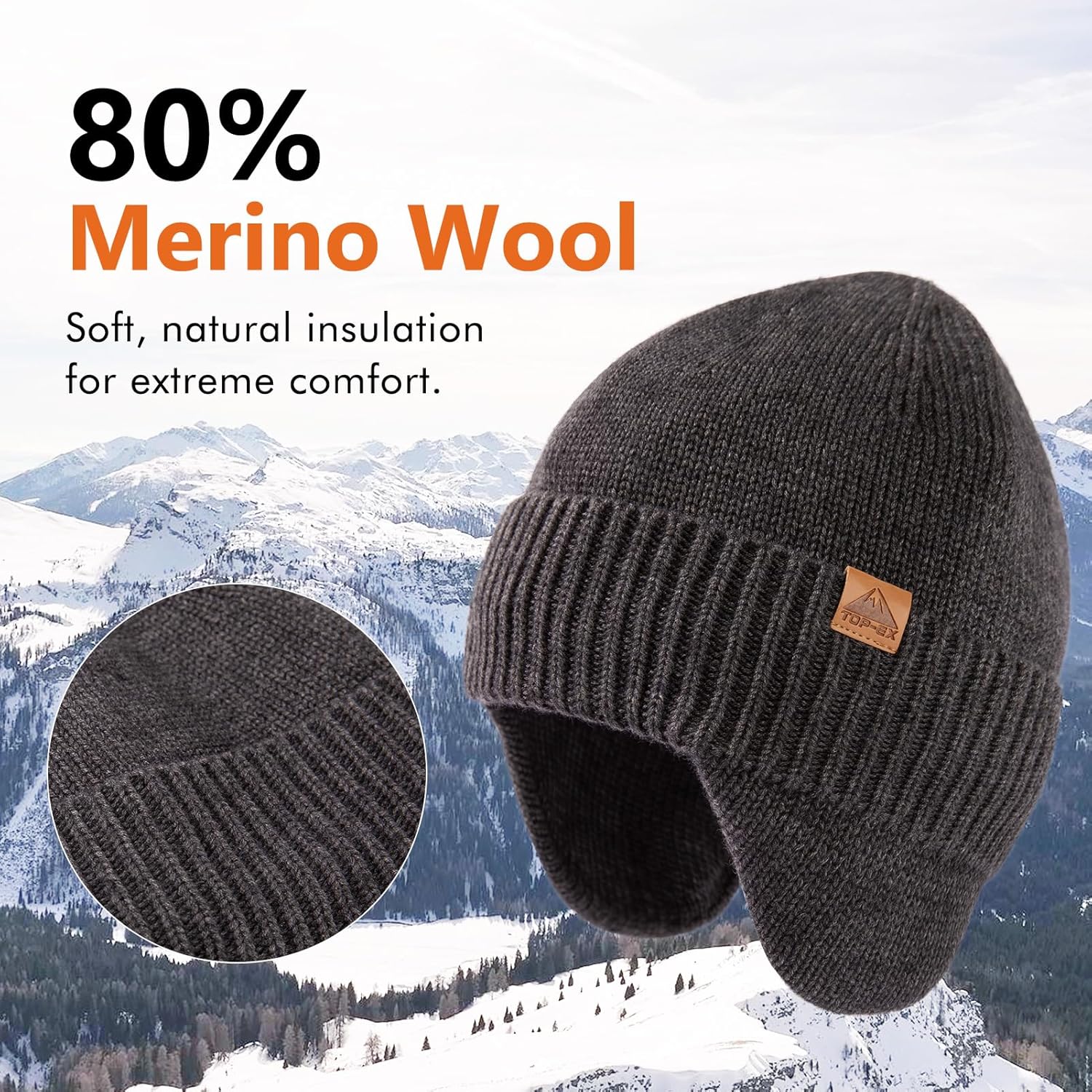 🥾 TOP-EX DryKnit™ Unisex 80% Merino Wool Waterproof Beanie with Ear Flap Warm Winter Fleece Lined Beanie Hat M/L/XL — Review, Key Features & Current Price