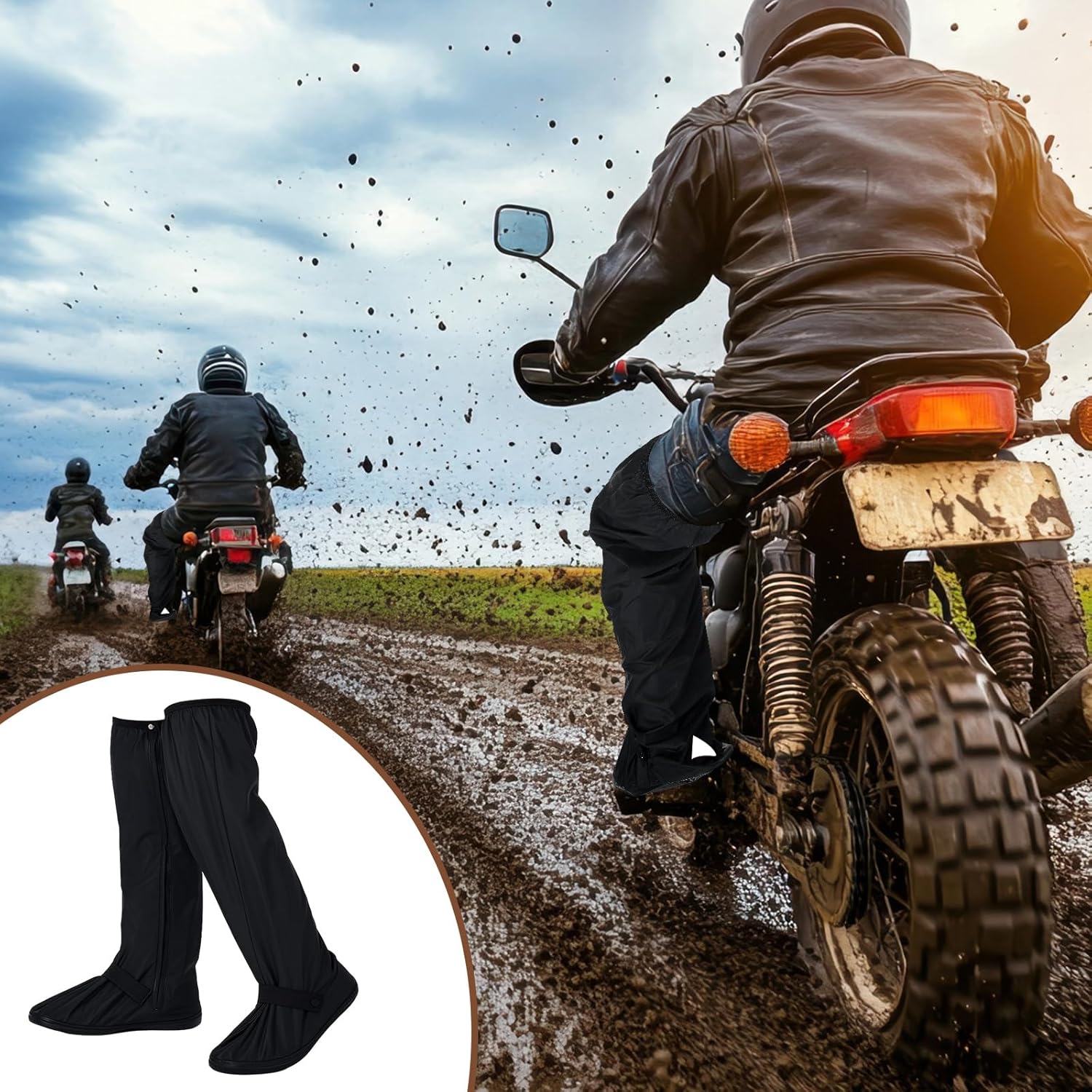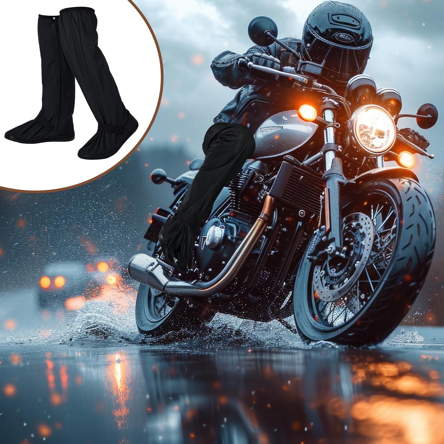 Shoe Protection: the primary function of the motorcycle boot covers waterproof are to provide complete protection for your shoes, keeping them dry, clean, and comfortable in challenging conditions such as mud, rain, and snow; By creating a reliable barrier against moisture and dirt, they effectively extend the lifespan of your expensive and beloved footwear; This protection saves you money and effort on shoe maintenance and cleaning, ensuring your shoes remain in pristine condition