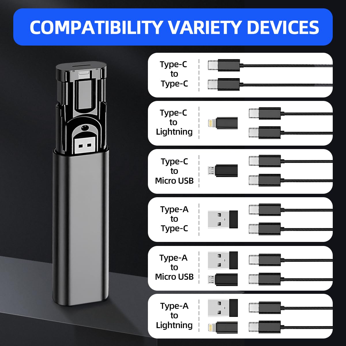 Say goodbye to bulk, just bring one! 6-in-1 design completely frees up your luggage space, eliminates cumbersome cables, and enjoys neat and convenient charging and transfer anytime, anywhere.