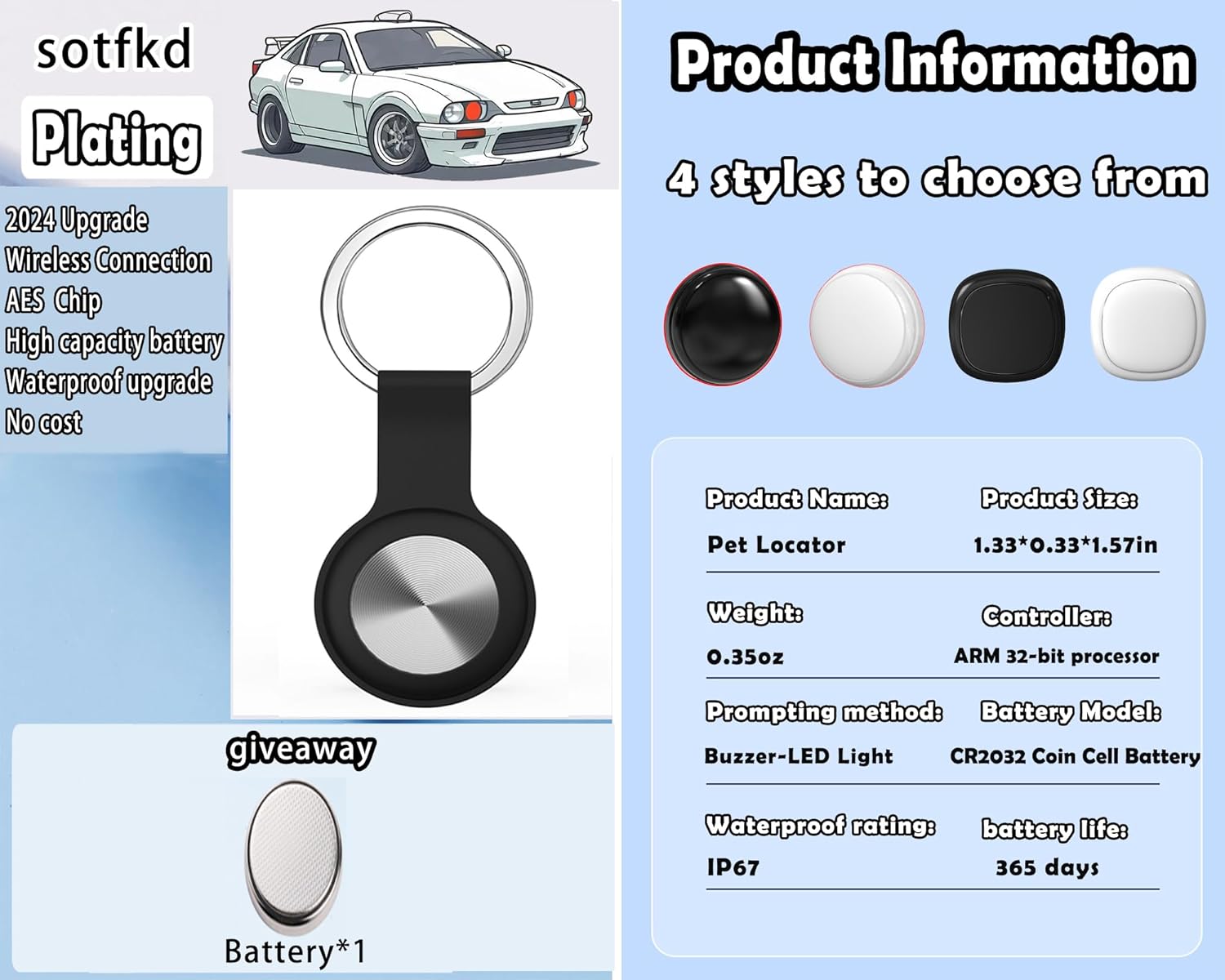 1、 Is there a distance limit? There is no distance limitation, it is available worldwide, as long as there is an Apple device within 10-50 meters nearby. Because it can’t locate itself, it relies on the nearby Apple devices to locate. 2、Is it real-time? If there is an Apple device nearby, it can locate in real time. If there is no Apple device nearby, it is not real-time 3、Working Principle It sends out a secure signal every two seconds for nearby Apple devices (cell phones, computers, tablets, etc.) to detect, receive, and upload to the Apple icloud cloud server, which generates a location, and then see its exact position on the map. The more nearby Apple devices, the faster the location update. 4、Region and Scope of Use Basically, it is in bustling urban areas or areas with many Apple devices. Not suitable for remote areas or areas with limited Apple devices. Please consider whether it is suitable to purchase again 5、Usage Scene Car,pets,valuables, suitcases, wallets, bicycles, electric cars looking for, lost courier 6、How to use? First, remove the insulating plastic film from the product. Search for findmytag in the Apple Store and download it. Once installed, Then open Findmy Tag, first categorize and name the locator, then enter your cell phone number or email, and of course, you can enter letters or numbers to bind it. After binding, the location of the locator will appear in the top right corner of the locator, and you will be able to navigate to your beloved pet. 7、It works on other phones? U.S. Android users download omyTag.cc on the Google Play store
