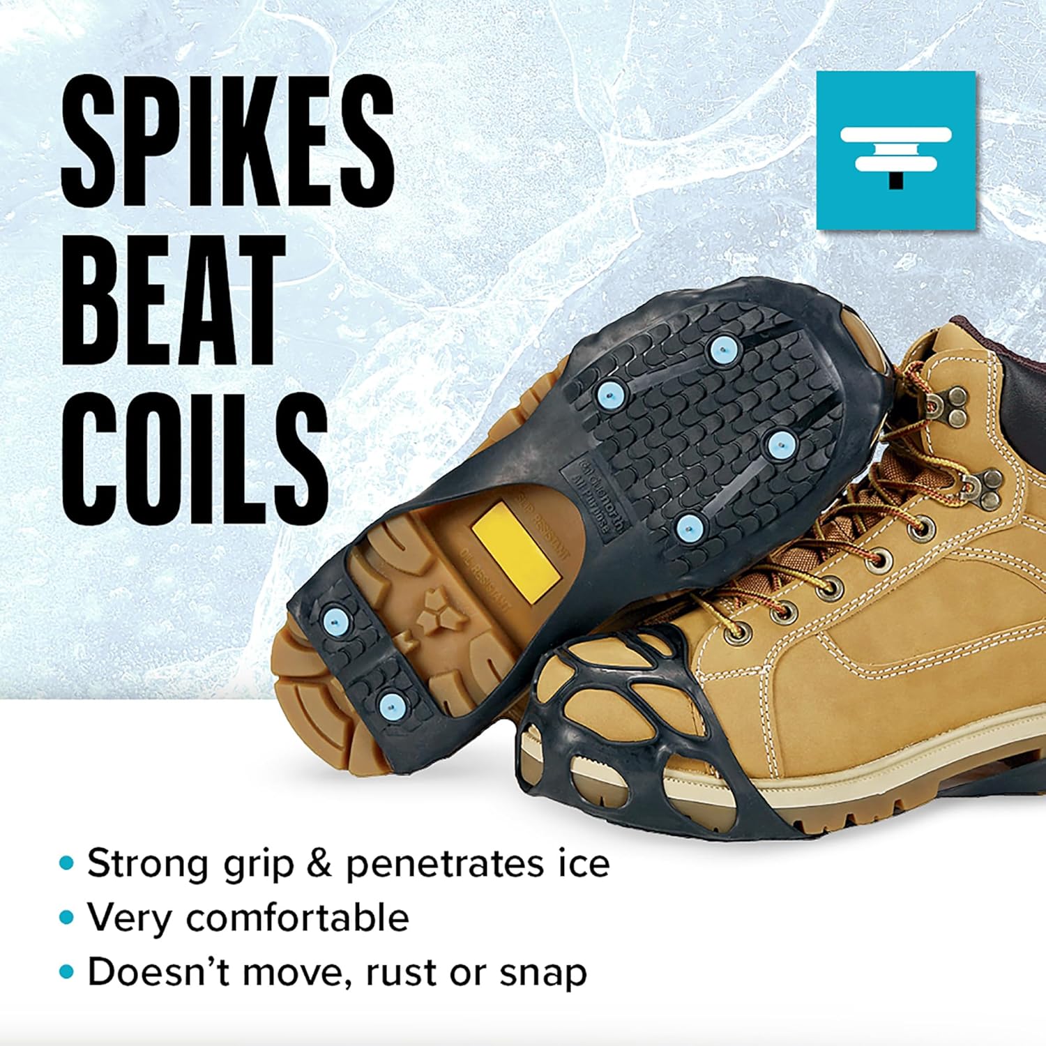 MAXIMUM DURABILITY – 100% natural rubber remains flexible in extreme cold & 12 replaceable military grade tungsten carbide spikes outperform coil & steel