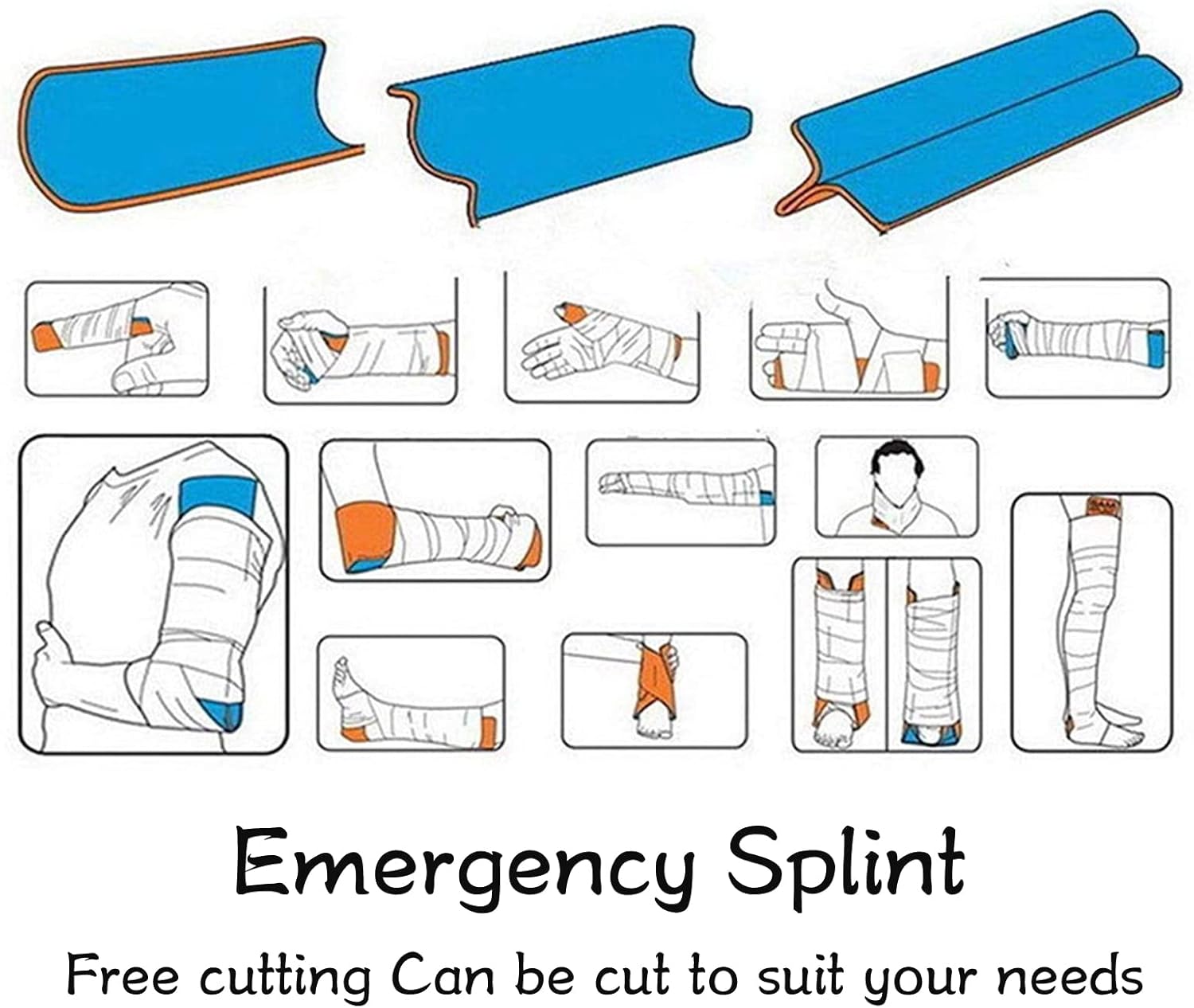 Convenient to Use: The emergency fracture splint is waterproof, hard wearing, reusable, small and easy to carry, and suitable for unexpected situations.