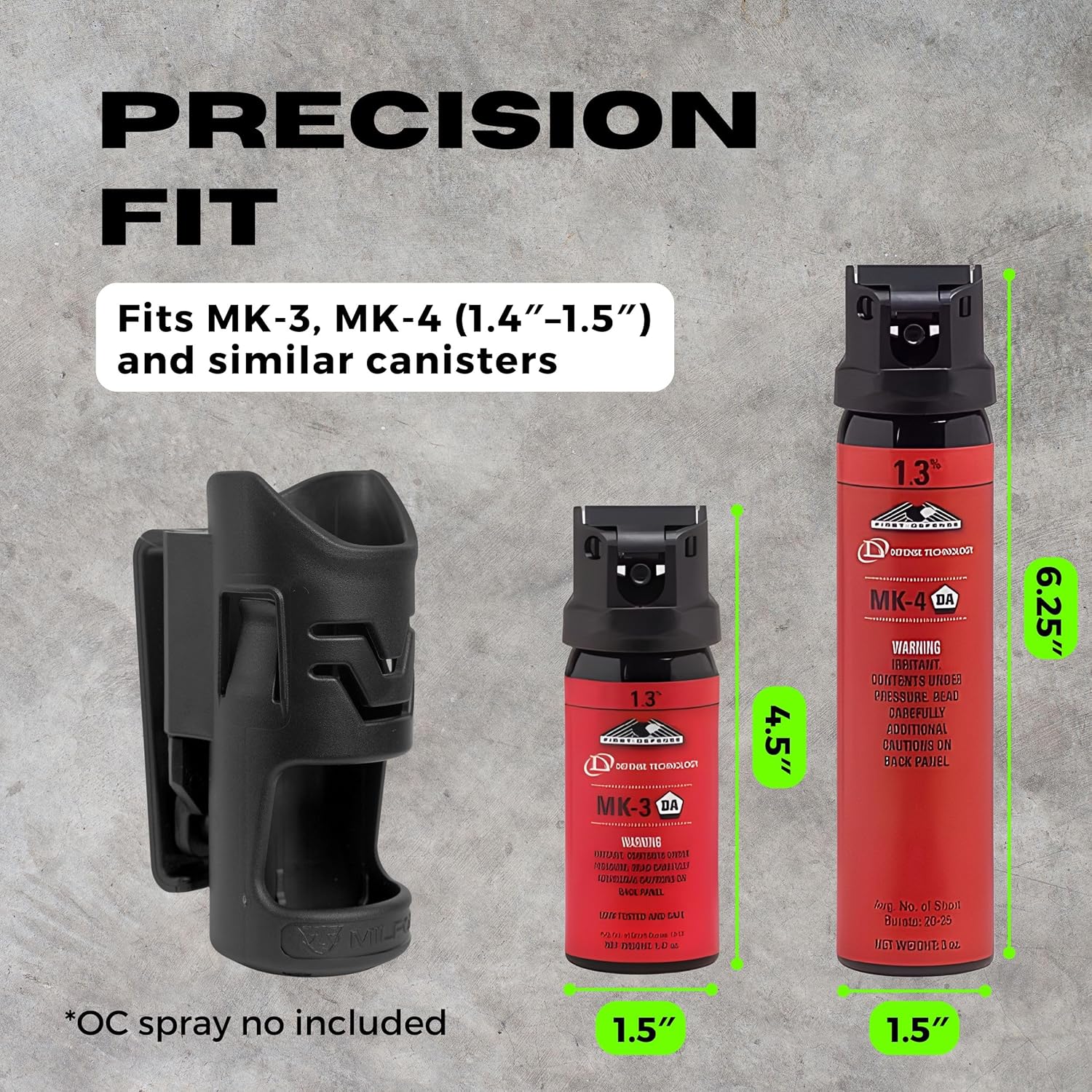 PRECISION OC SPRAY FIT ✔ Compatible with standard MK3, MK-4 pepper spray canisters and similar (1.4 – 1.5″ diameter). Tactical holster for men & women fits 2.25″ width belts and MOLLE systems.