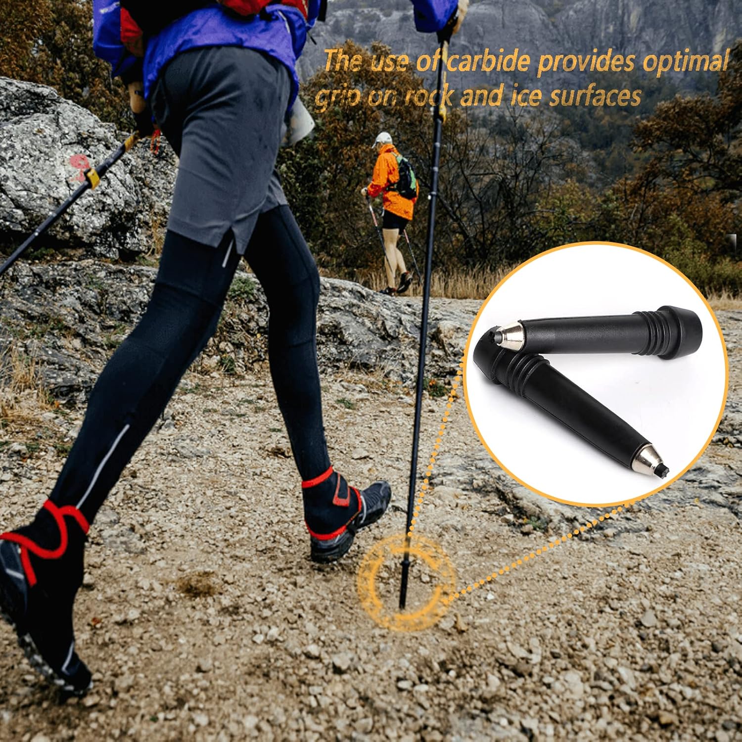 — 4 SEASON ALL TERRAIN USE: A quality proper interchangeable walking stick part for different terrains and weather conditions is vital important for a trekking poles.The use of carbide provides optimal grip on rock and ice surfaces,our Walking Stick Tips can adapt to the rugged outdoor terrain.