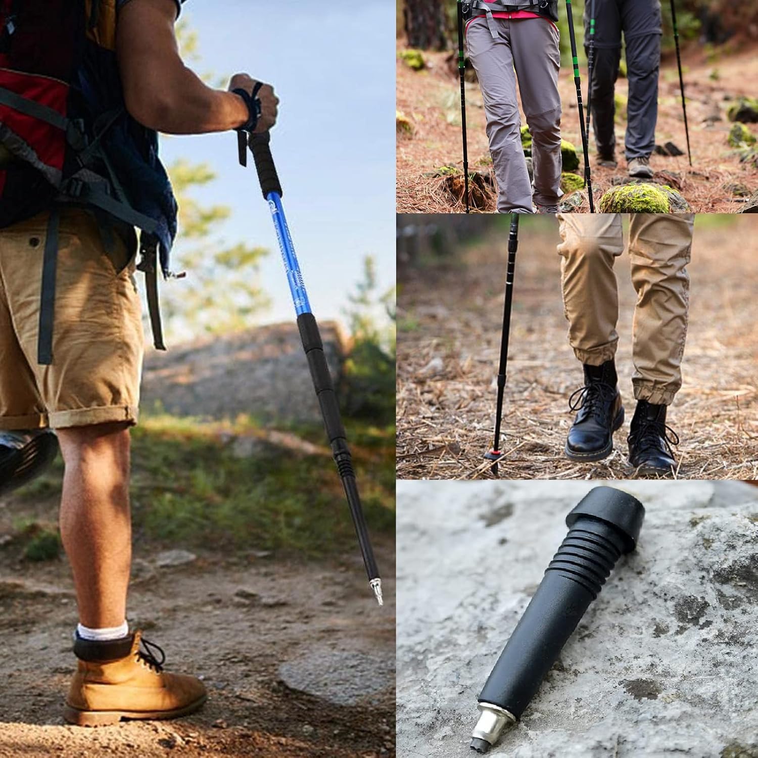 — High Cost Performance Hiking Walking Stick Accessories: Helps you move quicker.Get the only proper rubber tips for your next hiking places,and go far while exerting less energy for trekking,hiking, backpacking,camping,travel,snowshoeing and mountaineering.