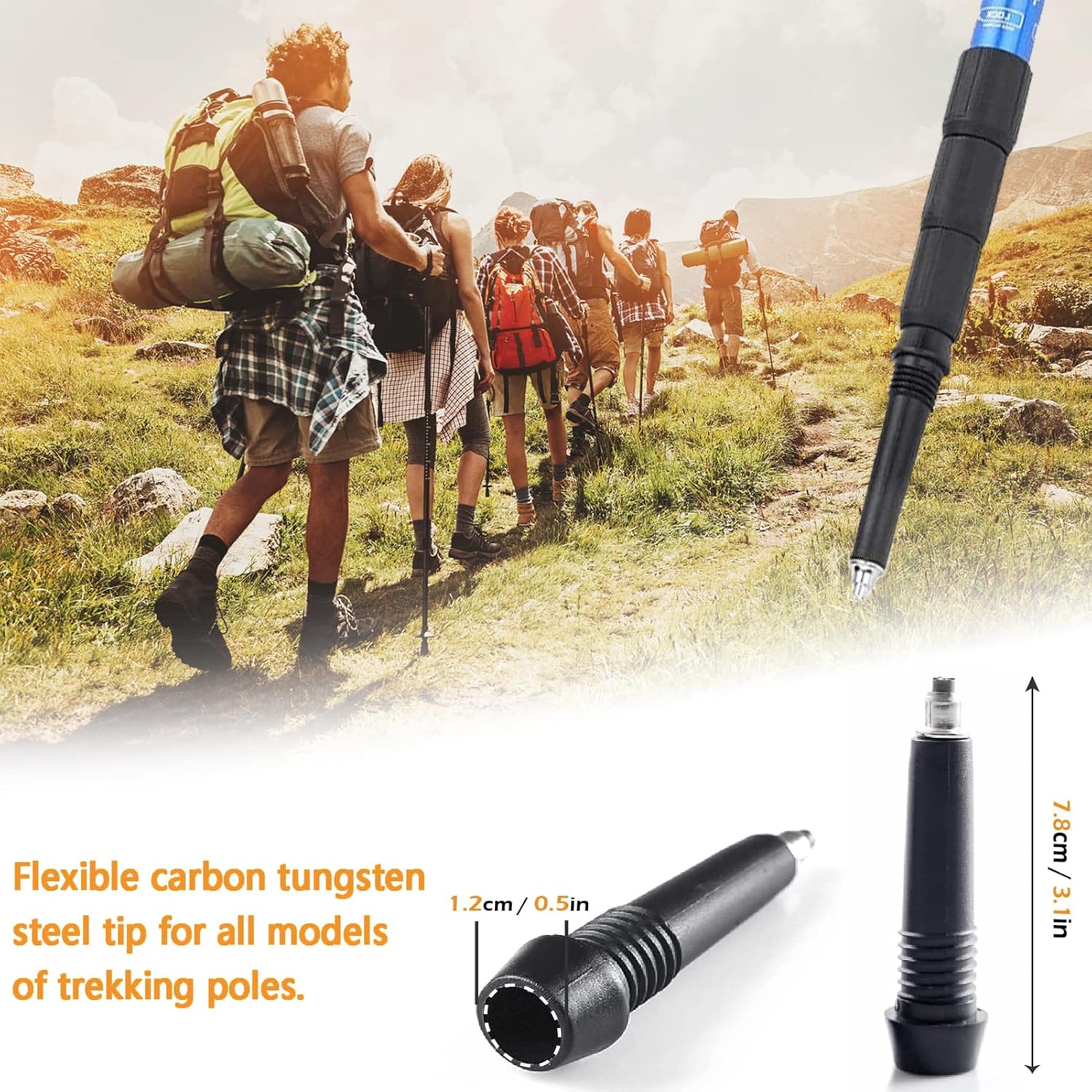 — Protect Your Poles: Walking Stick Tips metal function is to increase the rod tip gripping ability,effectively Prolong the Service Life of Your Walking Sticks,and prevent slipping with grip and traction to confidently go anywhere knowing your pole is securely planted.