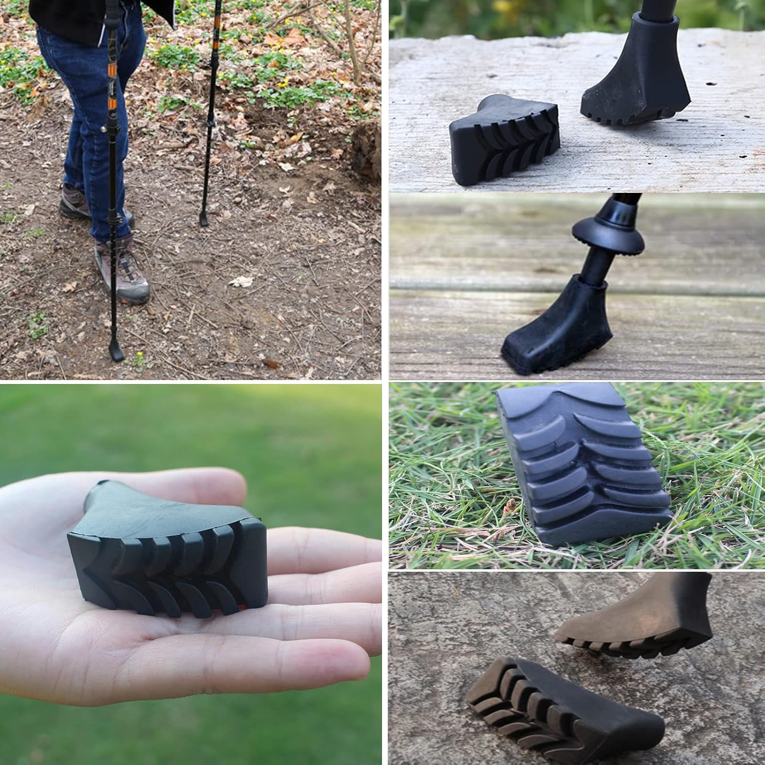 · Quality Rubber Walking Stick Tips — Durable rubber tips made with vulcanized rubber,features flexibility,lightweight and wear resistant.These rubber tips leave minimal impact on the terrain,as they minimize terrain scarring.