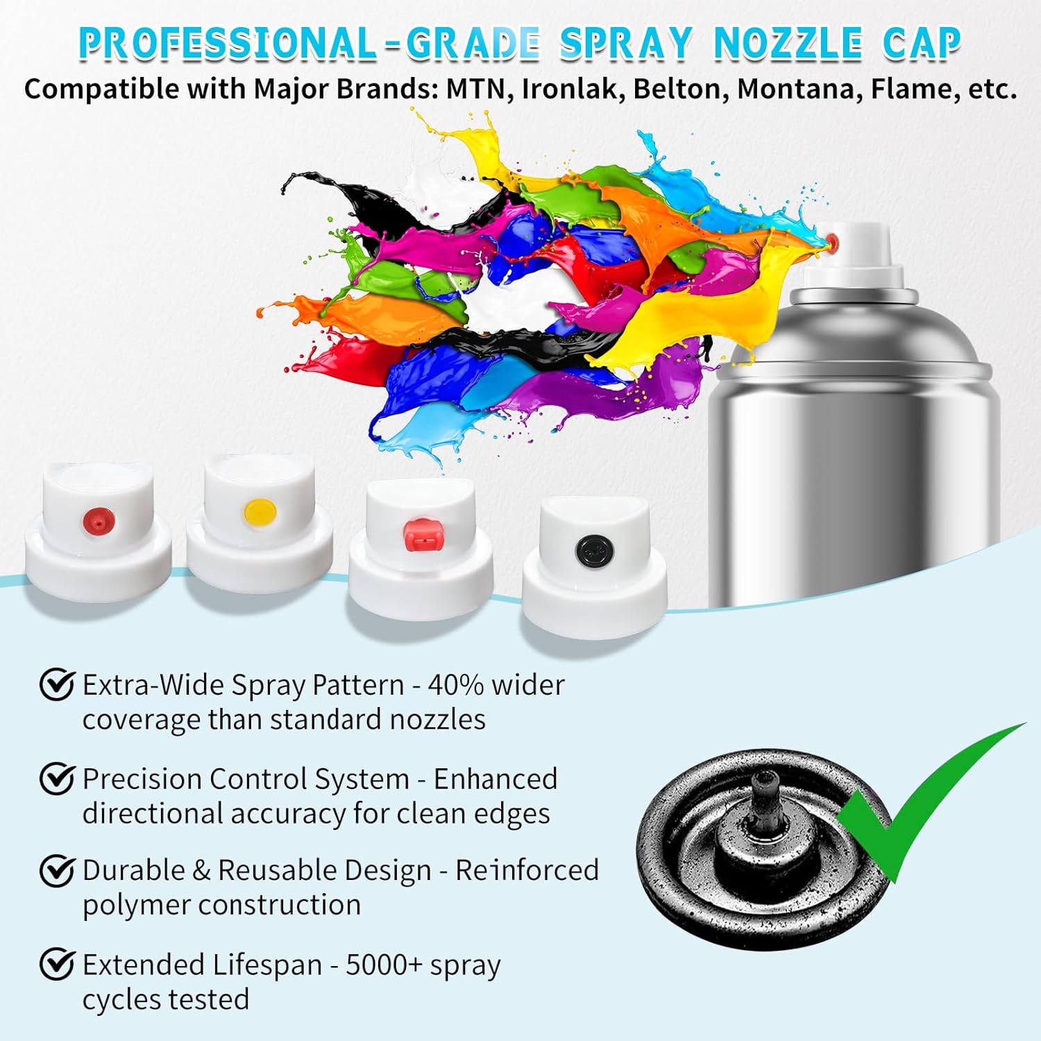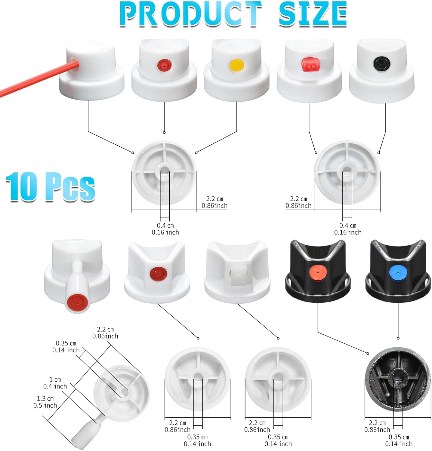 Precision Control for Graffiti & DIY Projects: Master spray art with 10 assorted nozzles- Create crisp lines for graffiti murals or wide coverage for furniture refinishing. Includes super-skinny caps for detail work and fan nozzles for smooth gradients. Fits different spray cans and most aerosol spray paint brands