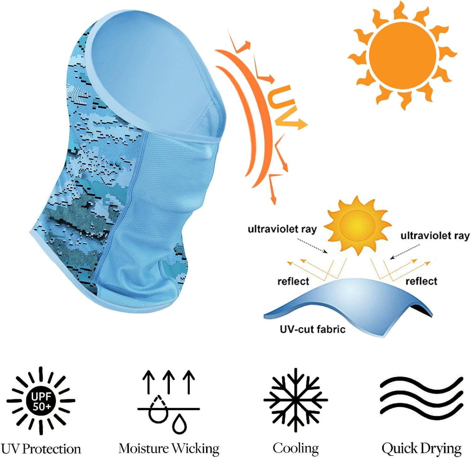 The ultra-light fabric wicks and dries quickly, and breathing mesh panel aid airflow and helps prevent sunglass fog. Wear it under a cap and tuck the bottom inside or outside a shirt for complete head and neck sun protection.
