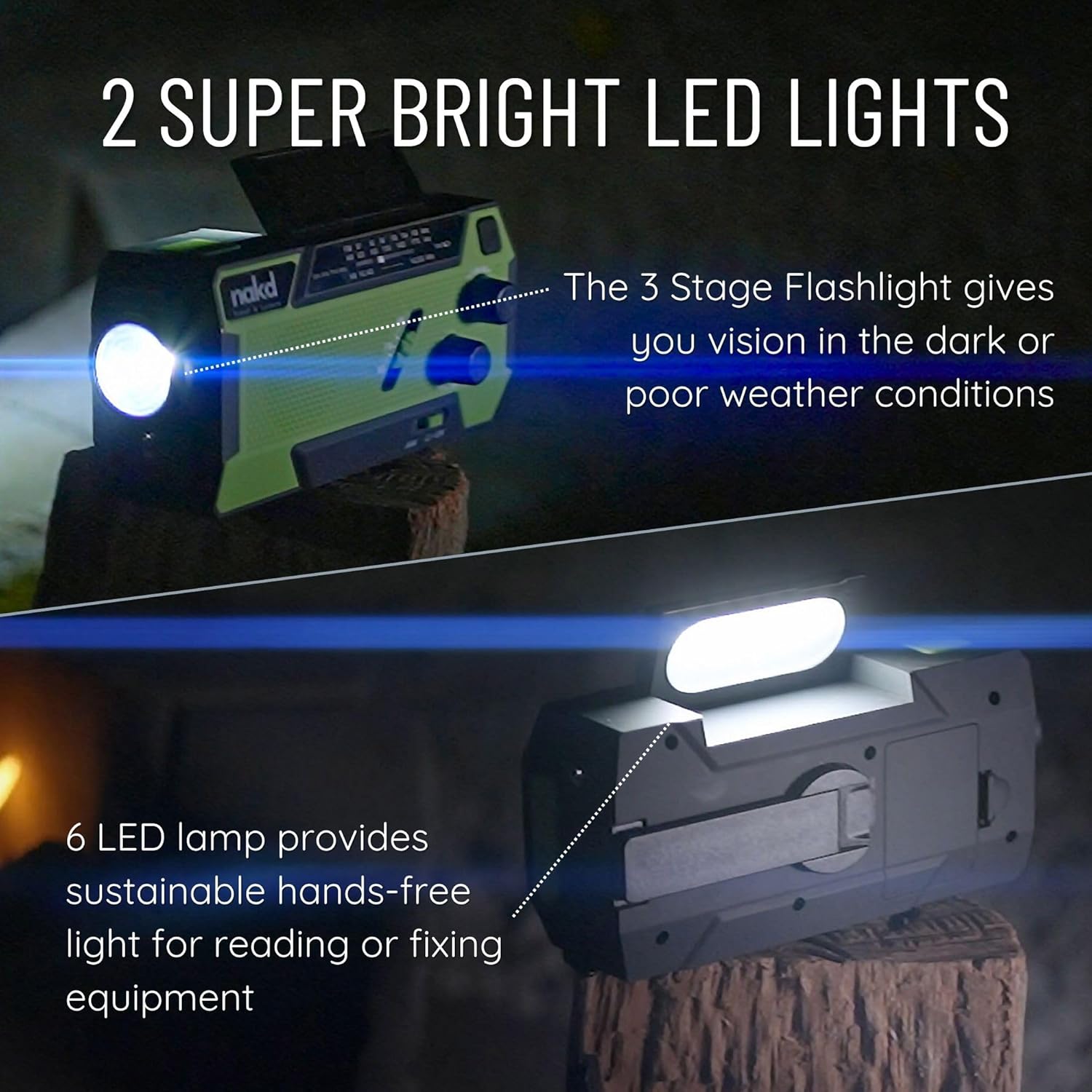 ๐ ๐๐ก๐๐ซ๐ ๐ข๐ง๐ ๐๐๐ญ๐ก๐จ๐๐ฌ & ๐ ๐๐ฑ๐ญ๐๐ซ๐ง๐๐ฅ ๐๐๐ฏ๐ข๐๐ ๐๐๐๐ฅ๐๐ฌ make this Portable Radio a must for any emergency survival kit. Hand Crank, Solar Power, AAA Battery and direct USB port make this a power outage essential. 3 built in cables allow you to charge multiple devices at the same time, providing you with a cell phone charger and other devices.