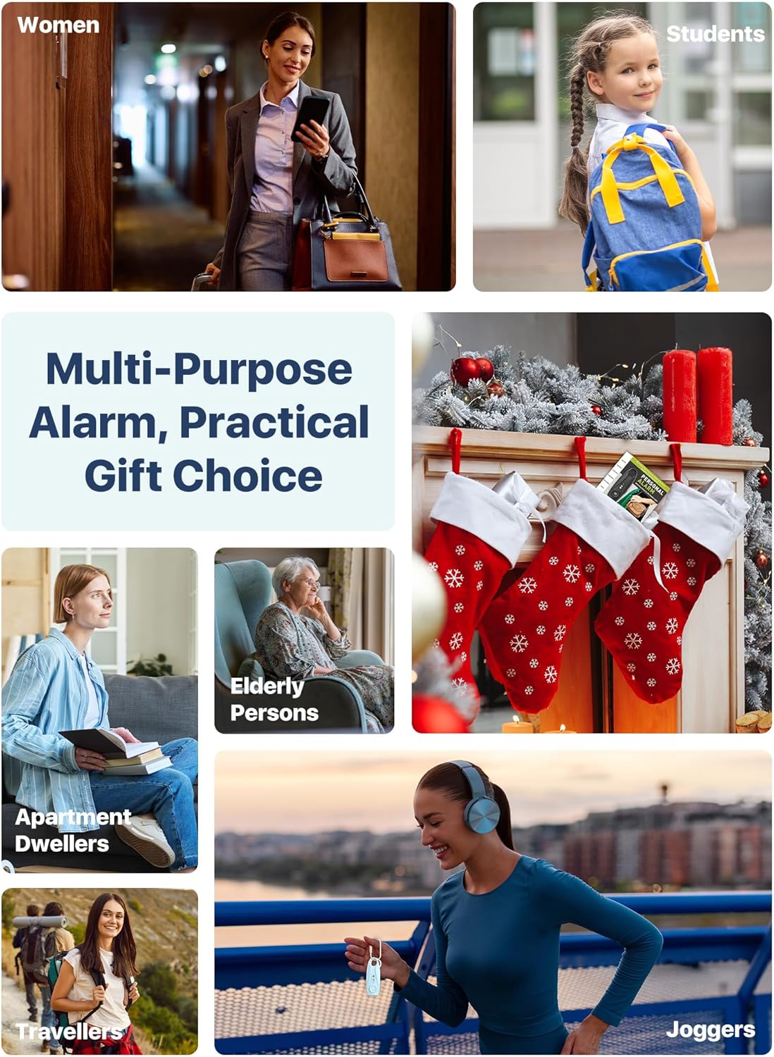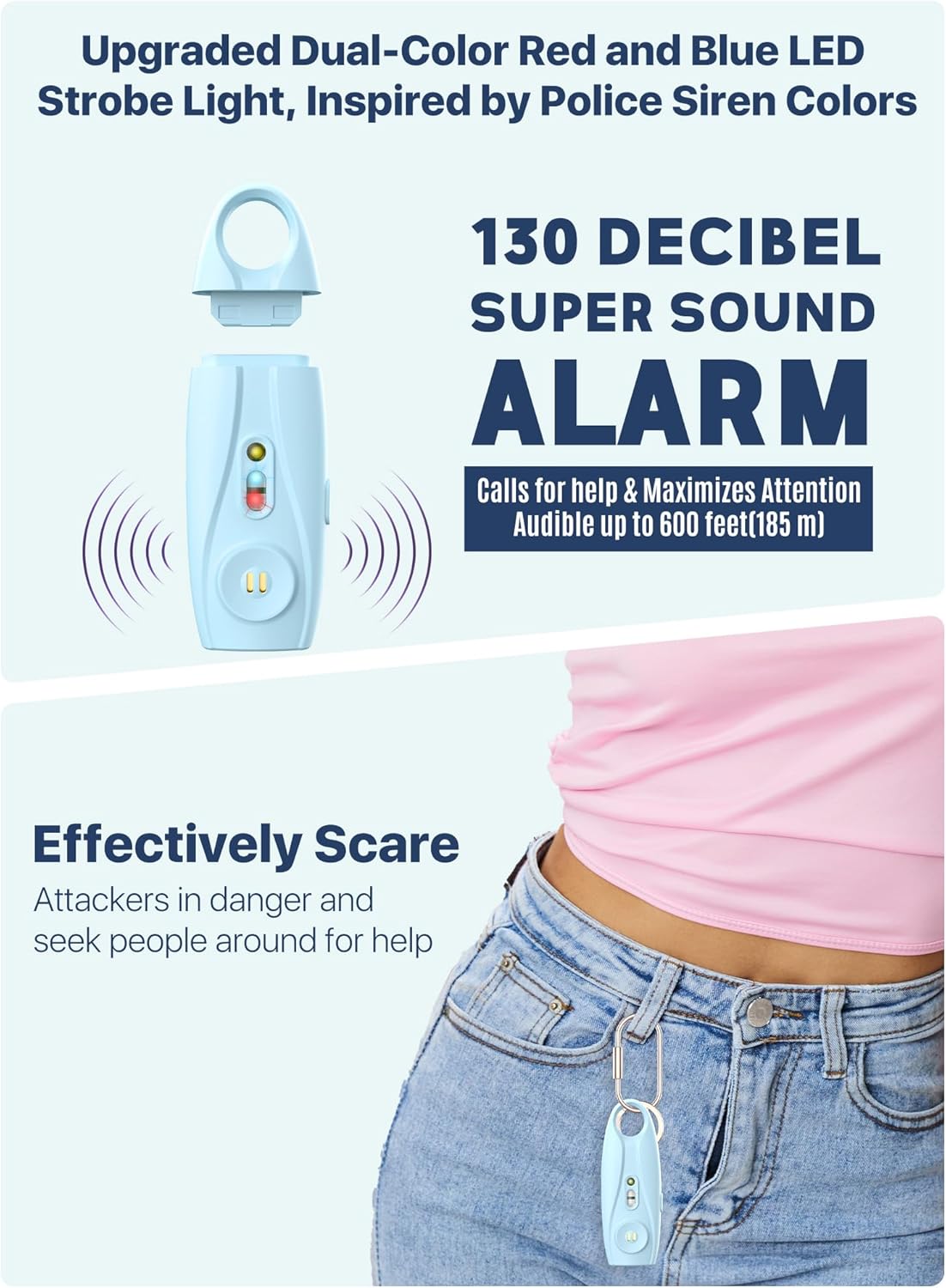 RECHARGEABLE SAFETY EMERGENCY ALARM: This compact personal security alarm emits 130 dB to disorient attackers and alert others. Its loud noise provides a chance to escape and signals nearby people for help, keeping you and your loved ones protected